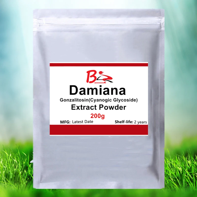 Экстракт Дамианы-это относительно небольшой кустарник, который производит маленькие Ароматические Цветы. Цветет в начале-конце лета, за ним следуют фрукты, которые по вкусу похожи на инжир. Говорят, что кустарник имеет сильную Специю, как запах, как ромашка, из-за масла, присутствующего на заводе. Листья обычно были сделаны в чае и благовонии, которые были использованы коренными жителями Центральной и Южной Америки для его расслабляющего эффекта. Испанские миссионеры впервые записали, что мексиканские индейцы выпивали чай Дамиана, смешанный с сахаром, для использования в качестве афродизиака.