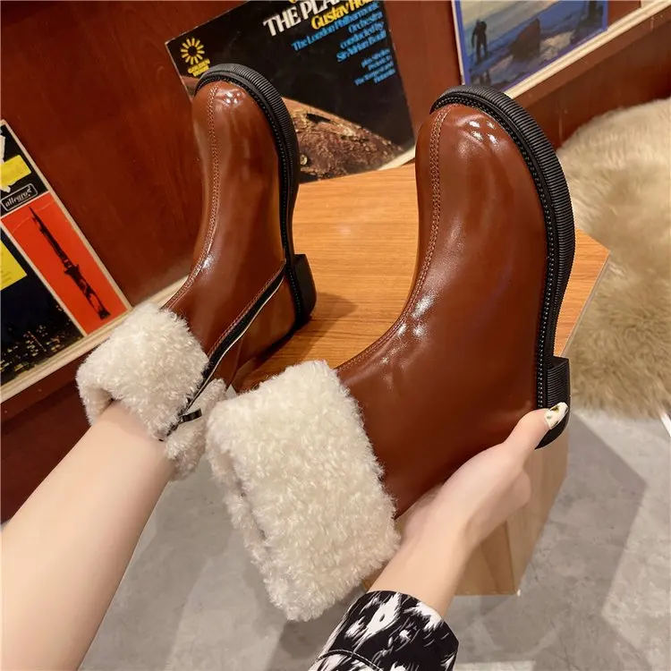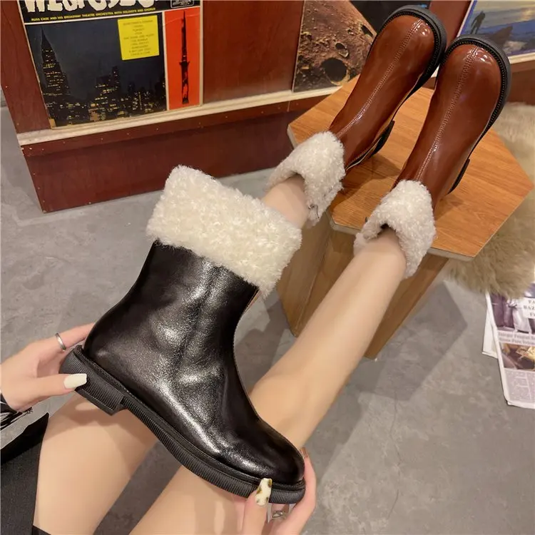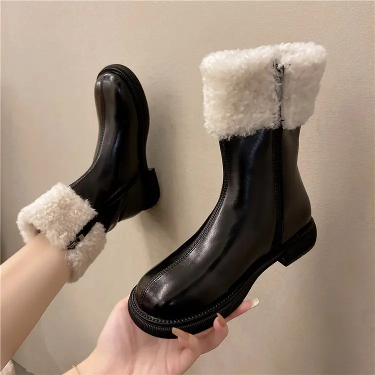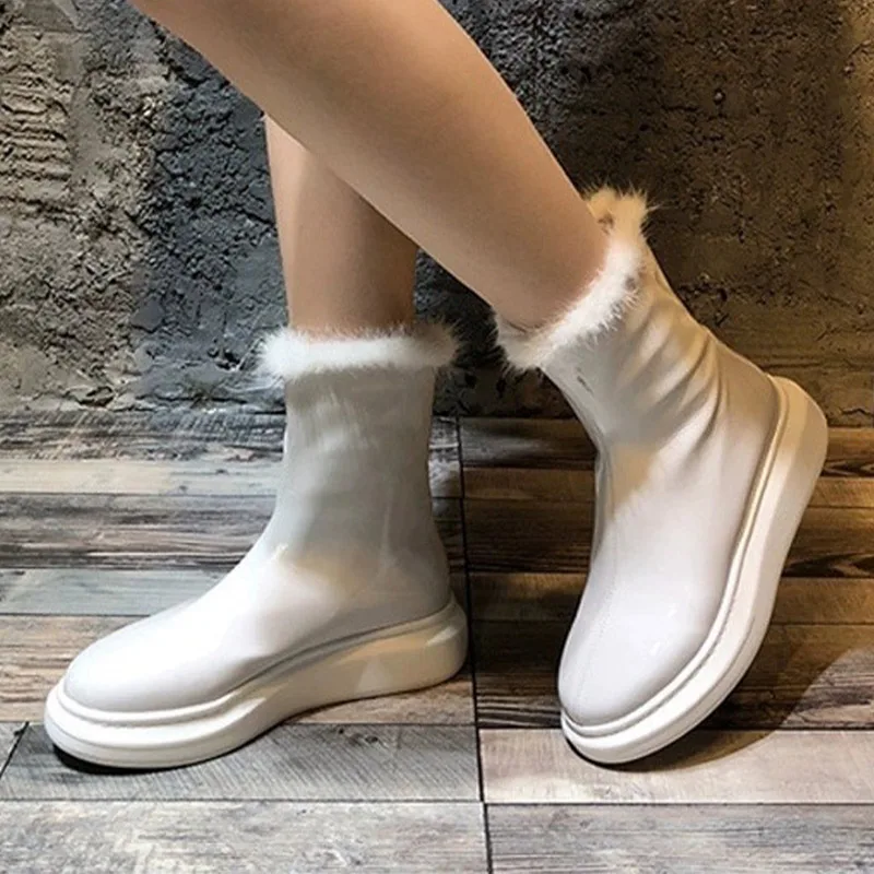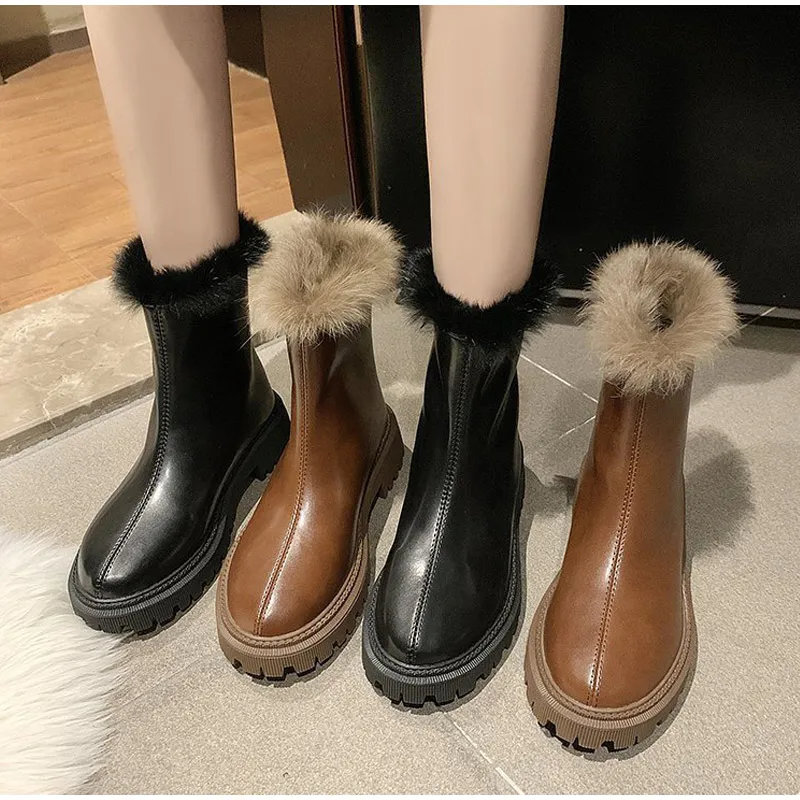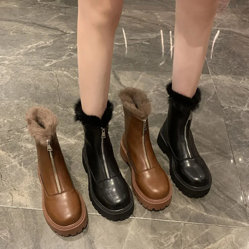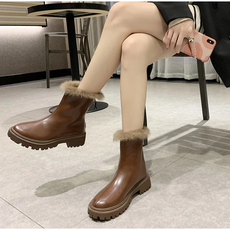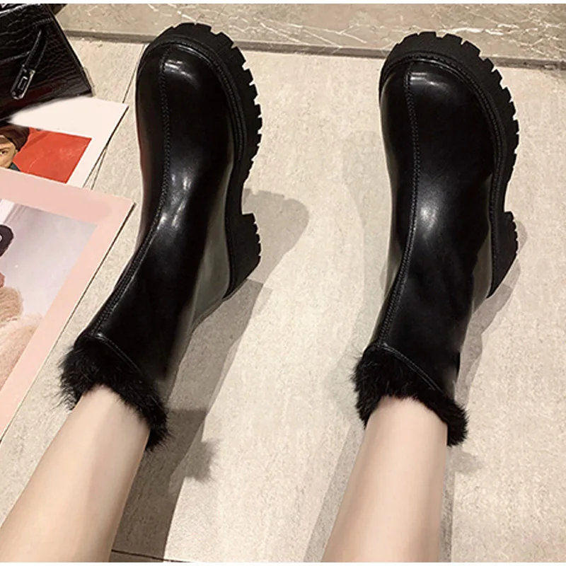 Женские ботильоны, теплые плюшевые зимние женские ботинки на массивном каблуке, женские ботинки челси на платформе, Нескользящие повседневные ботинки без шнуровки, 2021