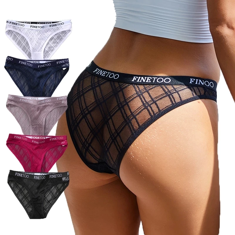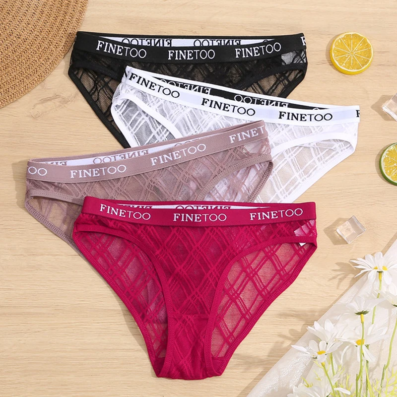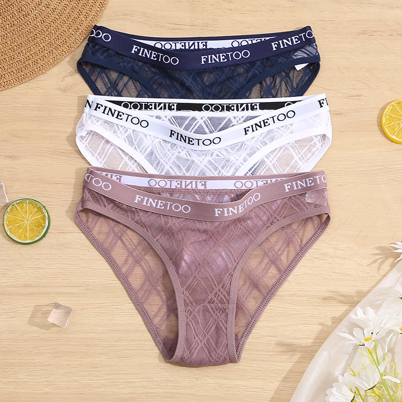 Женские кружевные трусики M-2XL, сексуальное нижнее белье FINETOO с заниженной талией, женские сетчатые ажурные трусы, женские трусы, геометрические трусики