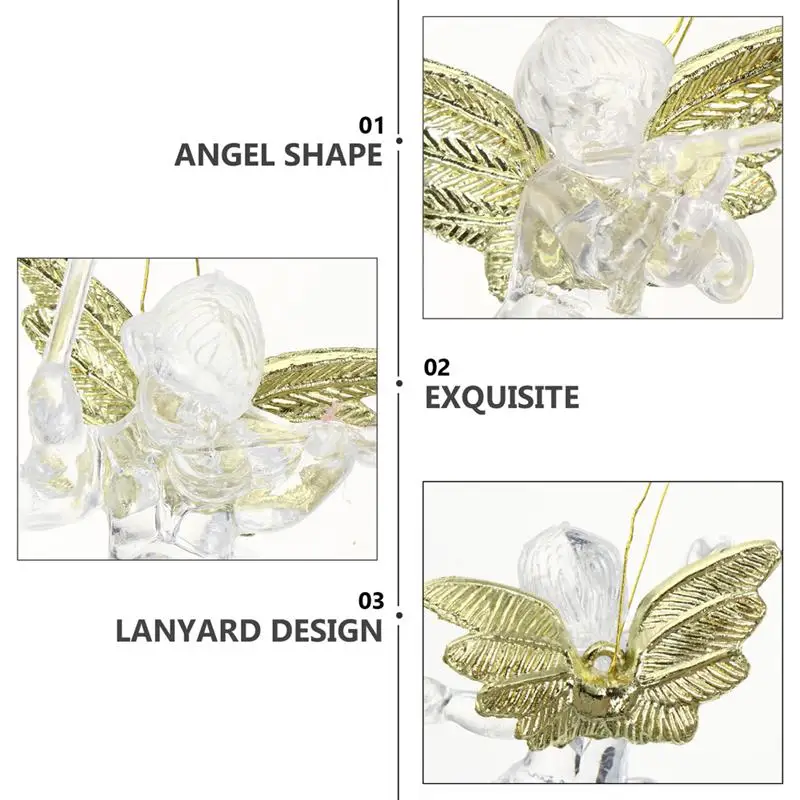 Изделия-подвески в виде Рождественского Ангела с золотым крылом, изготовленные из высококачественного материала. Восхитительный внешний вид обеспечивает удобство использования. Это идеальное дополнение украшения для вашего дома или офиса, гостиной, детской комнаты. Подвески подарят ощущение счастья, чтобы добавить атмосферу праздника.