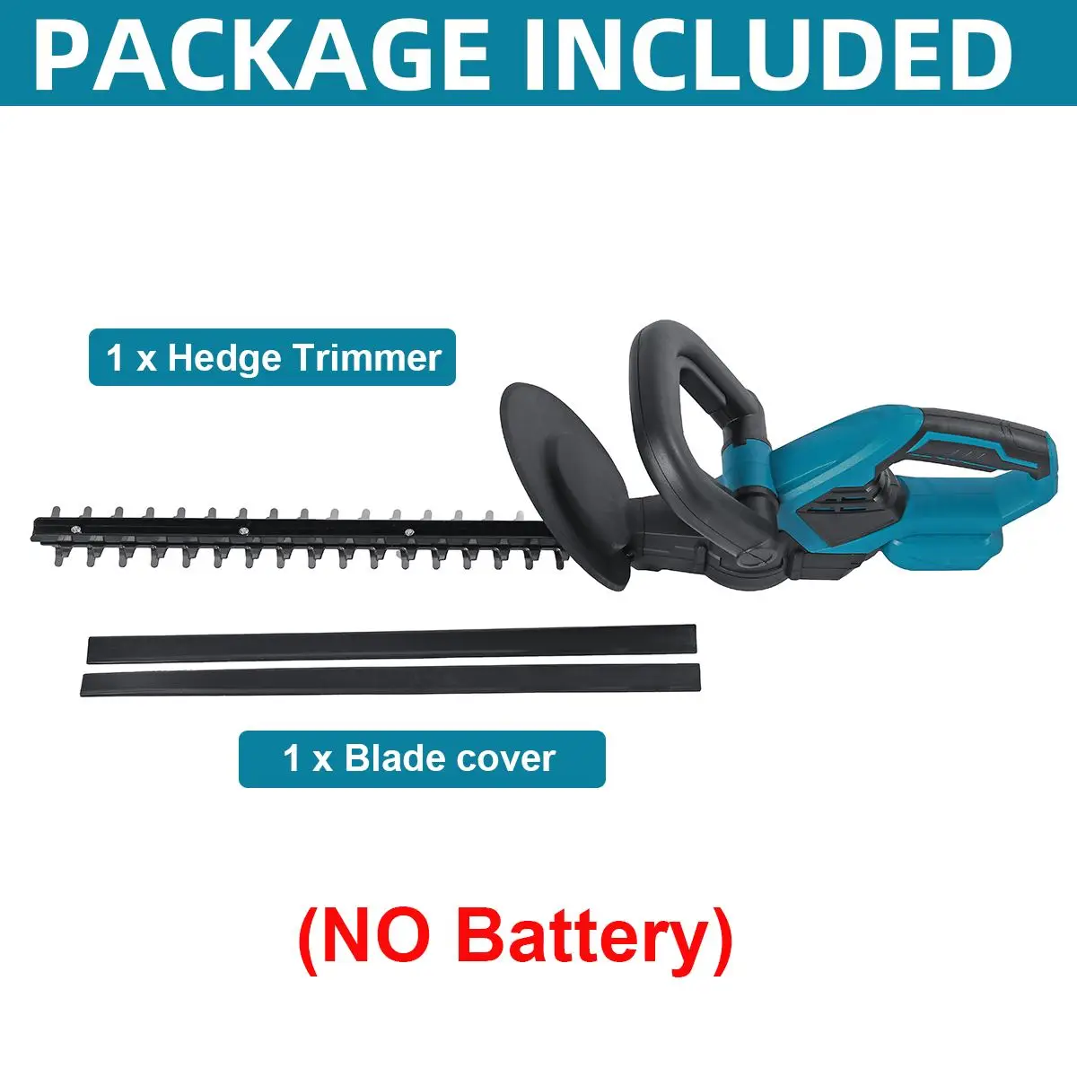 Упаковка включает:1 x триммер для изгороди1 x крышка лезвияБез батареи/1x/2x батареи1 зарядное устройство (только аккумулятор)