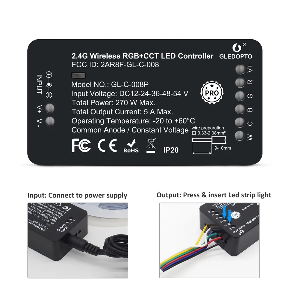 Название продукта: контроллер светодиодной ленты ZIGBEE RGBCCT ProНомер модели: GL-C-008PНапряжение: DC12V-24-36-48-54VТок: 5AРазмер: 89*48*23,5 ммРабочая температура:-20-60 °CВход: 5,5x2,1 мм разъем питания постоянного тока