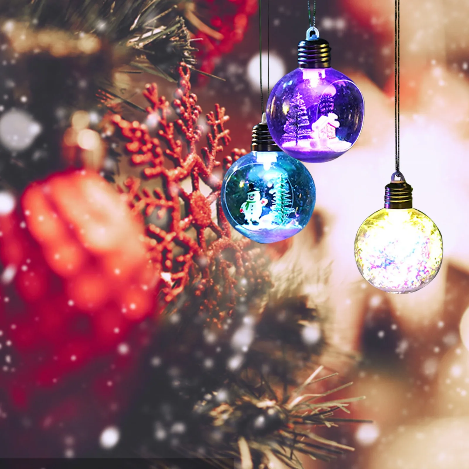 Рождественские украшения с прозрачными шариками, светодиодная подсв...