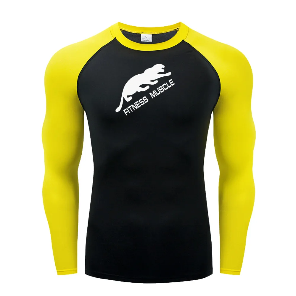 Желтая футболка для бега, Мужская футболка-Рашгард с длинным рукаво...