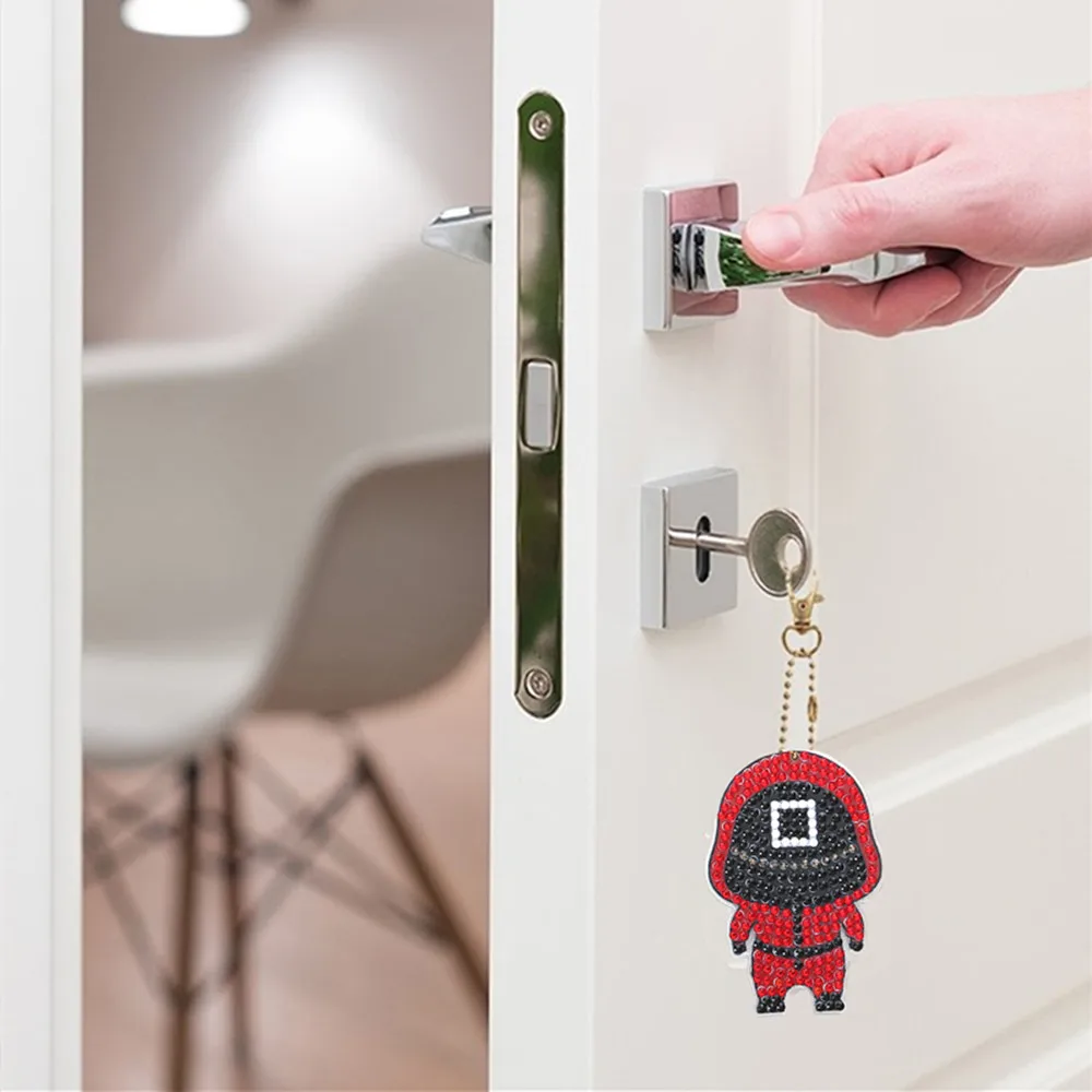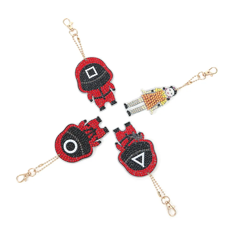5 шт. 5D алмазная живопись мультфильм кальмар игра фигурки маска металлический брелок Мозаика Искусство поделки кулон Декор Рождественский подарок