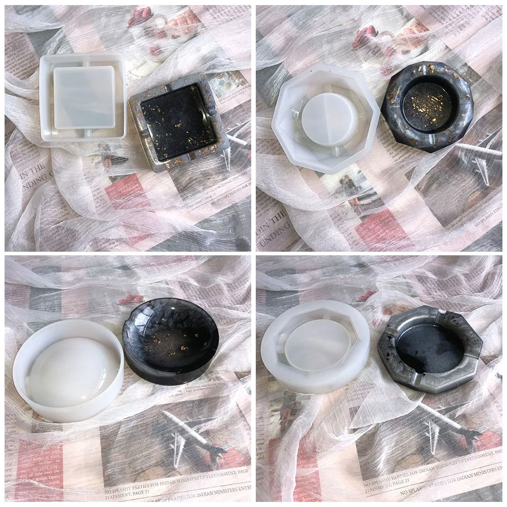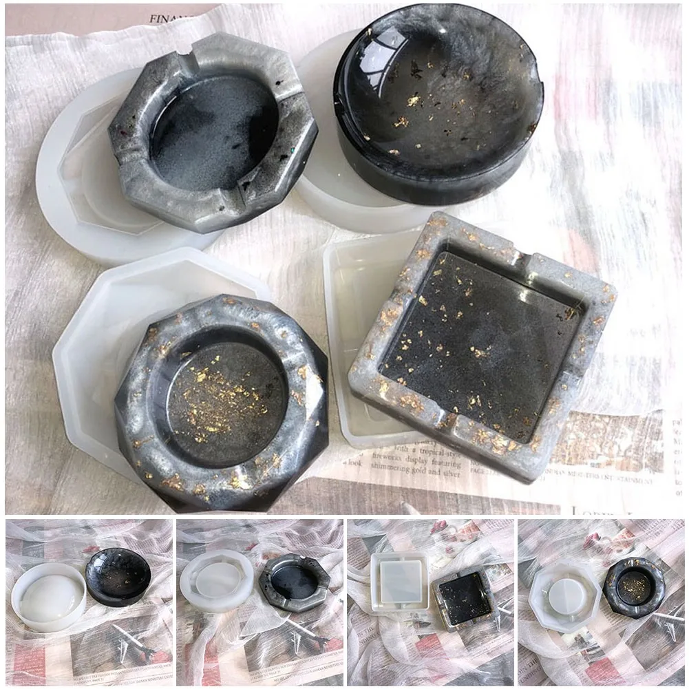 Силиконовая форма для пепельницы, форма для поделок из смолы, круглая, квадратная, бриллиантовая, зеркальная, пепельница, литье из смолы, инструмент для УФ эпоксидной смолы