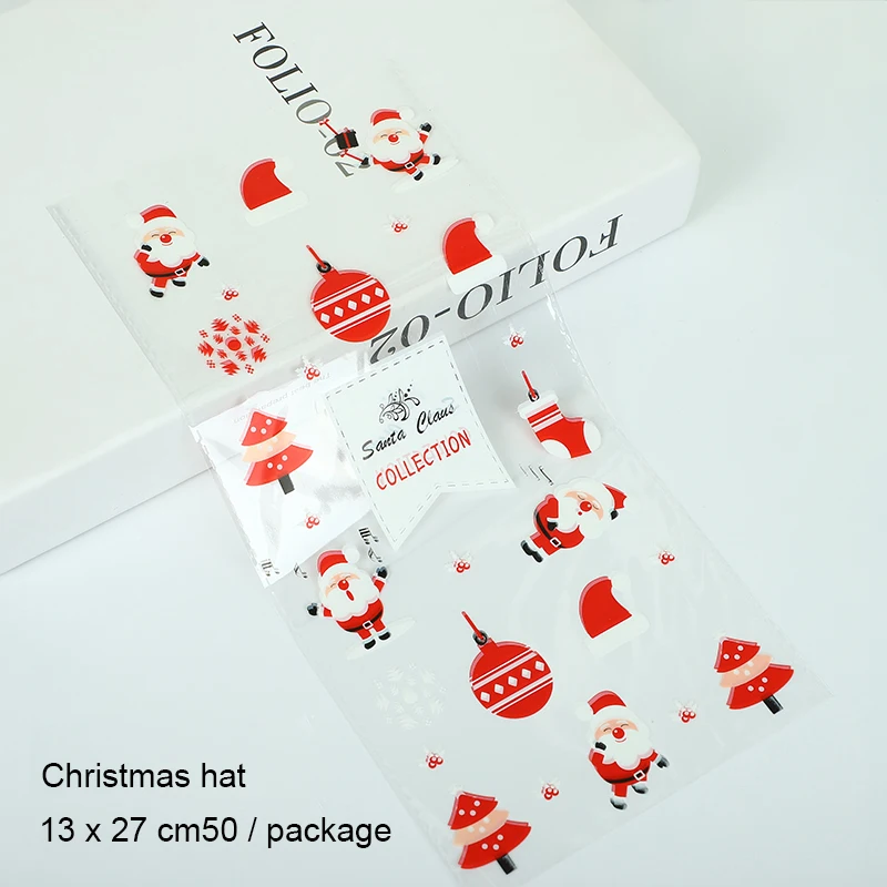 2022 рождественские пакеты для печенья, пластиковые пакеты для конфет, женское украшение для бисквита, детское украшение на день рождения, 50 шт.