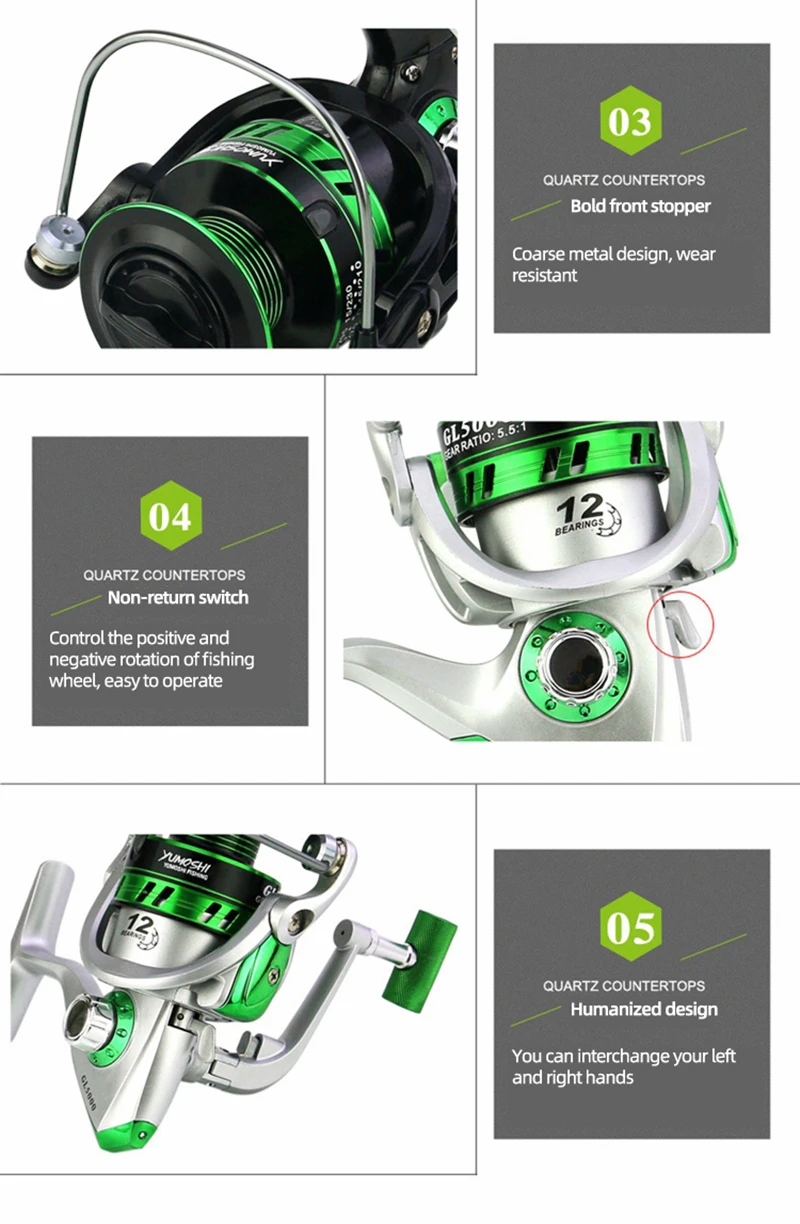 YUMOSHI 12-осевая металлическая спиннинговая Рыболовная катушка со сменной ручкой для максимального фрикциона 5,5: 1 высокоскоростные рыболовные аксессуары