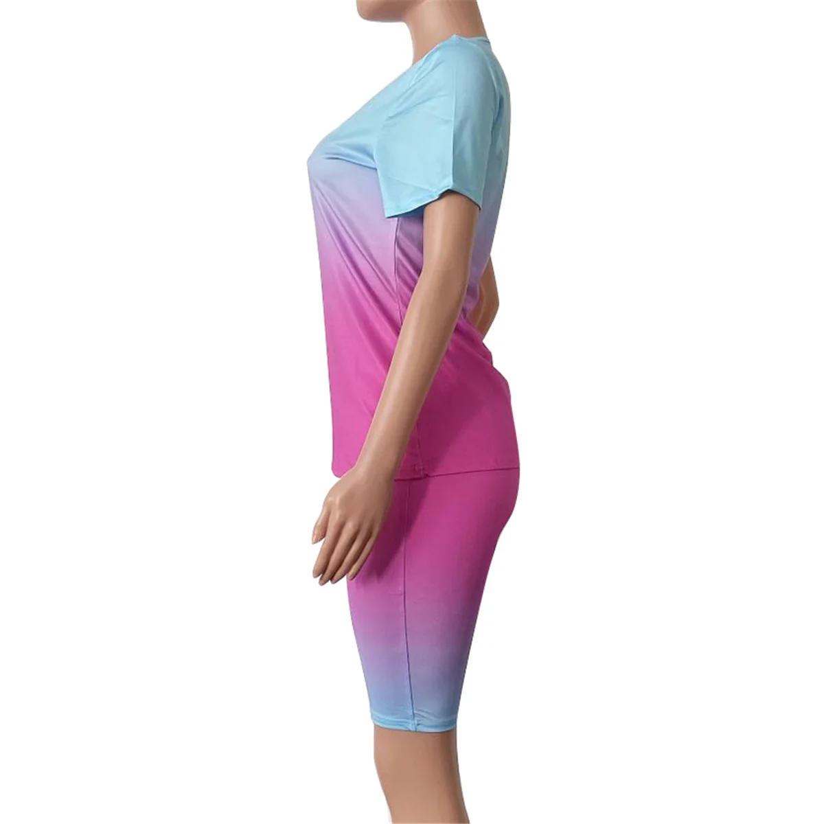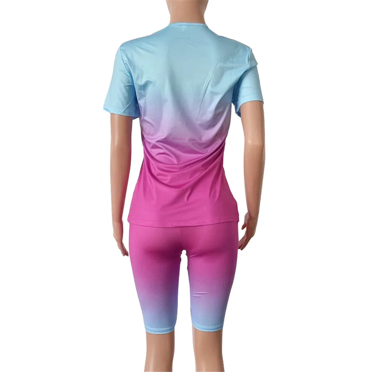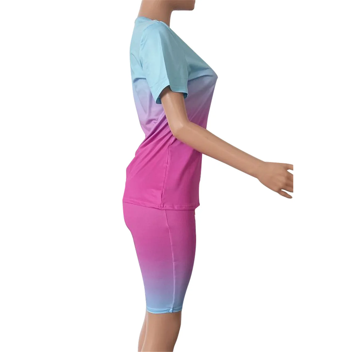 Женские повседневные костюмы из 2 предметов, градиентные футболки с коротким рукавом, женский спортивный костюм, спортивный костюм, комбинезоны