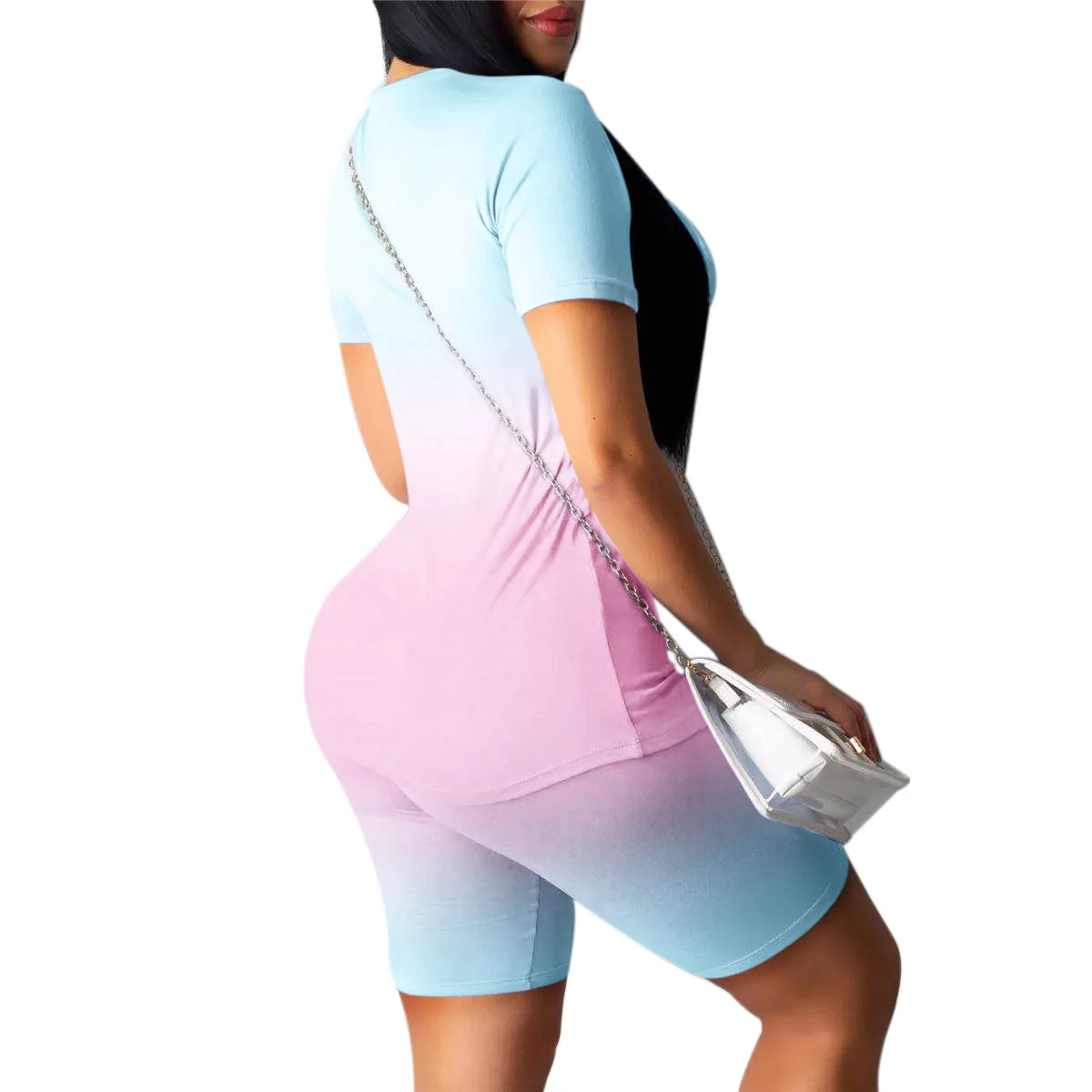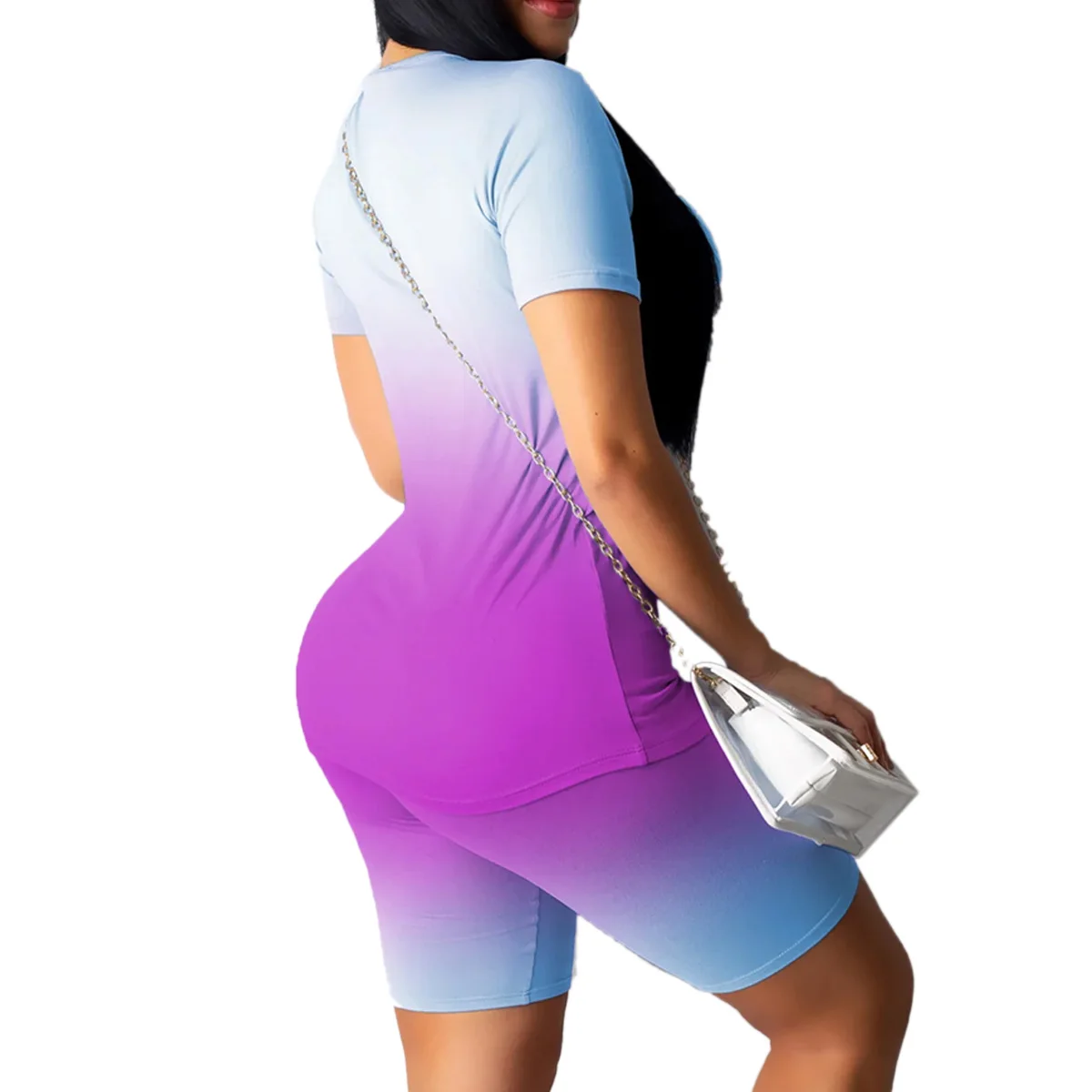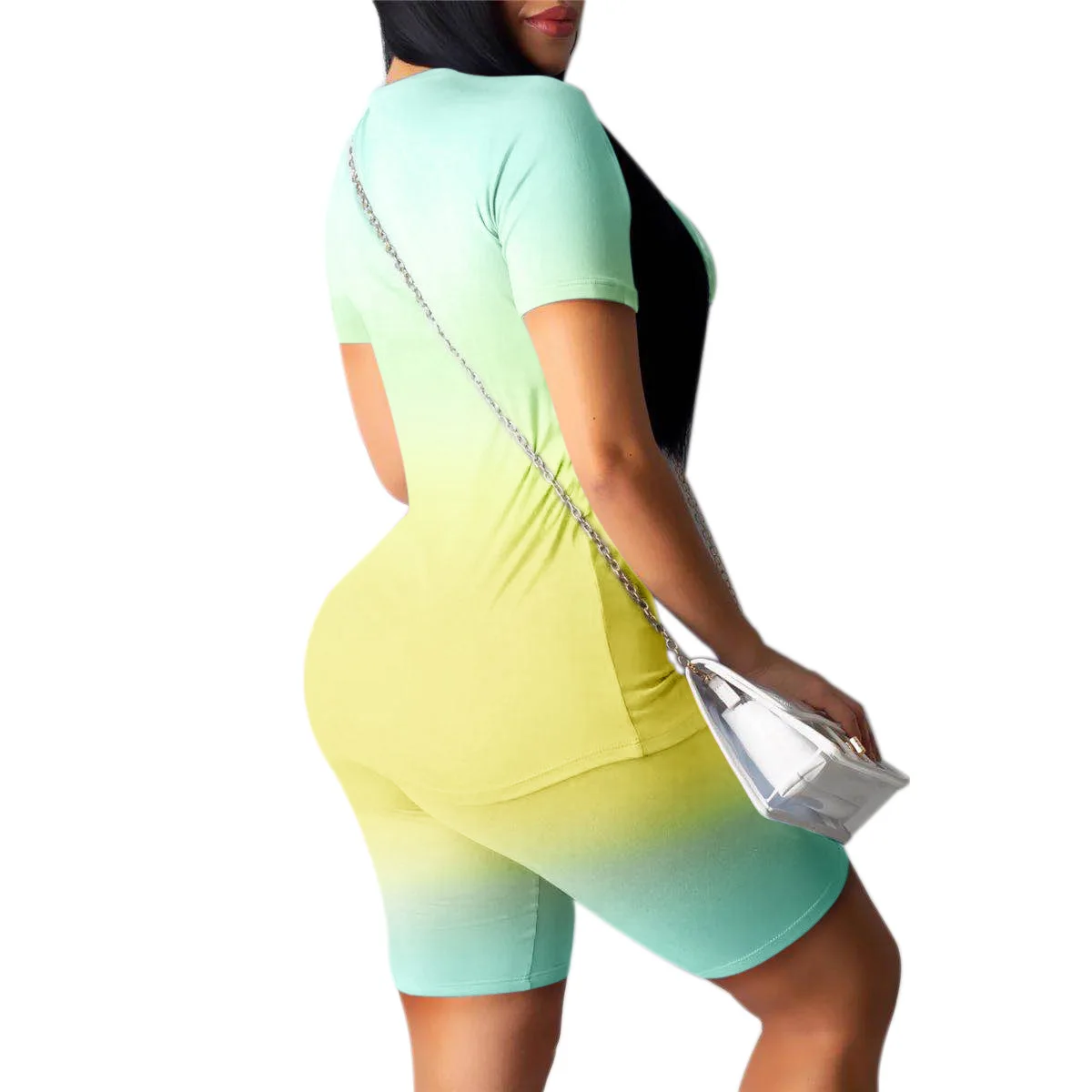 Женские повседневные костюмы из 2 предметов, градиентные футболки с коротким рукавом, женский спортивный костюм, спортивный костюм, комбинезоны