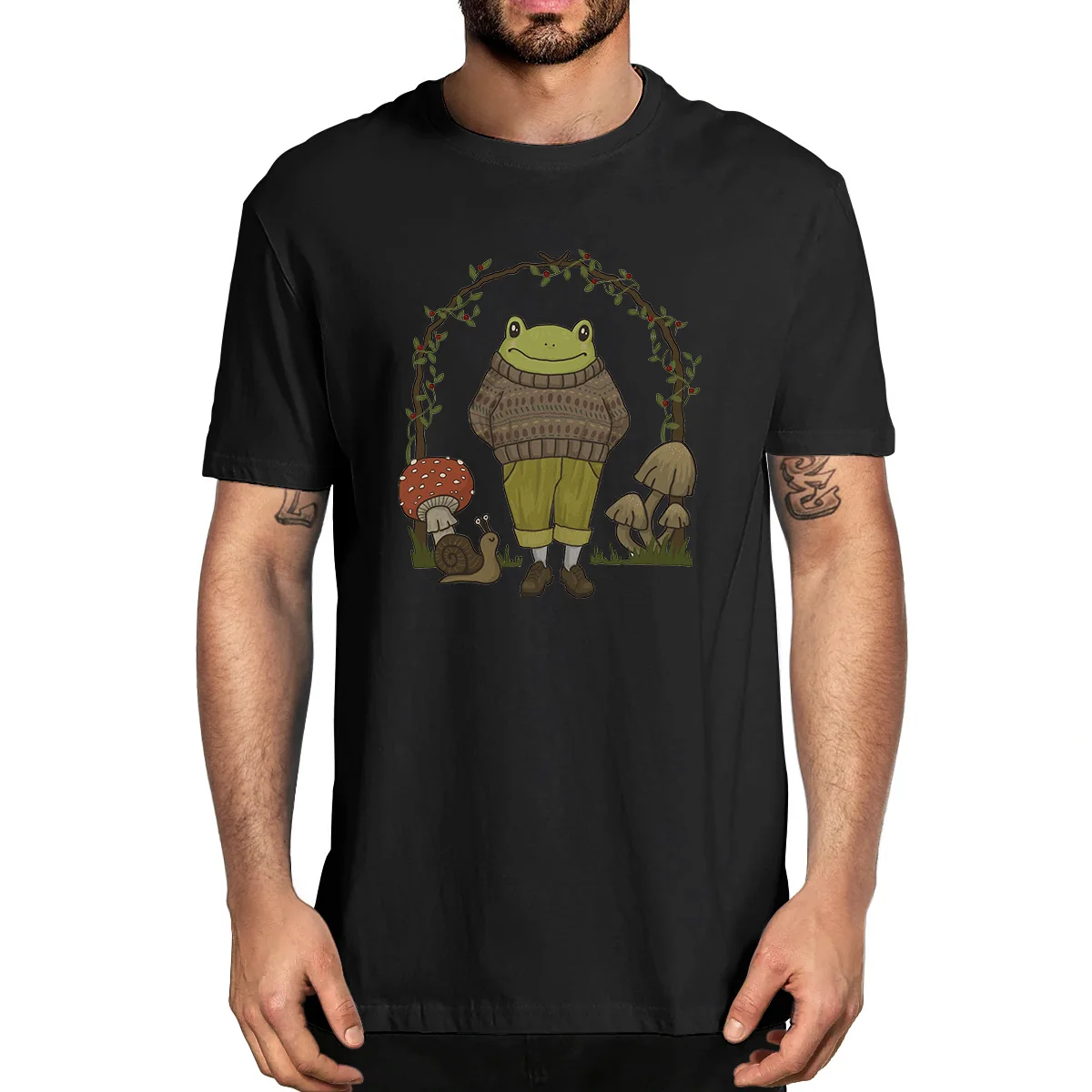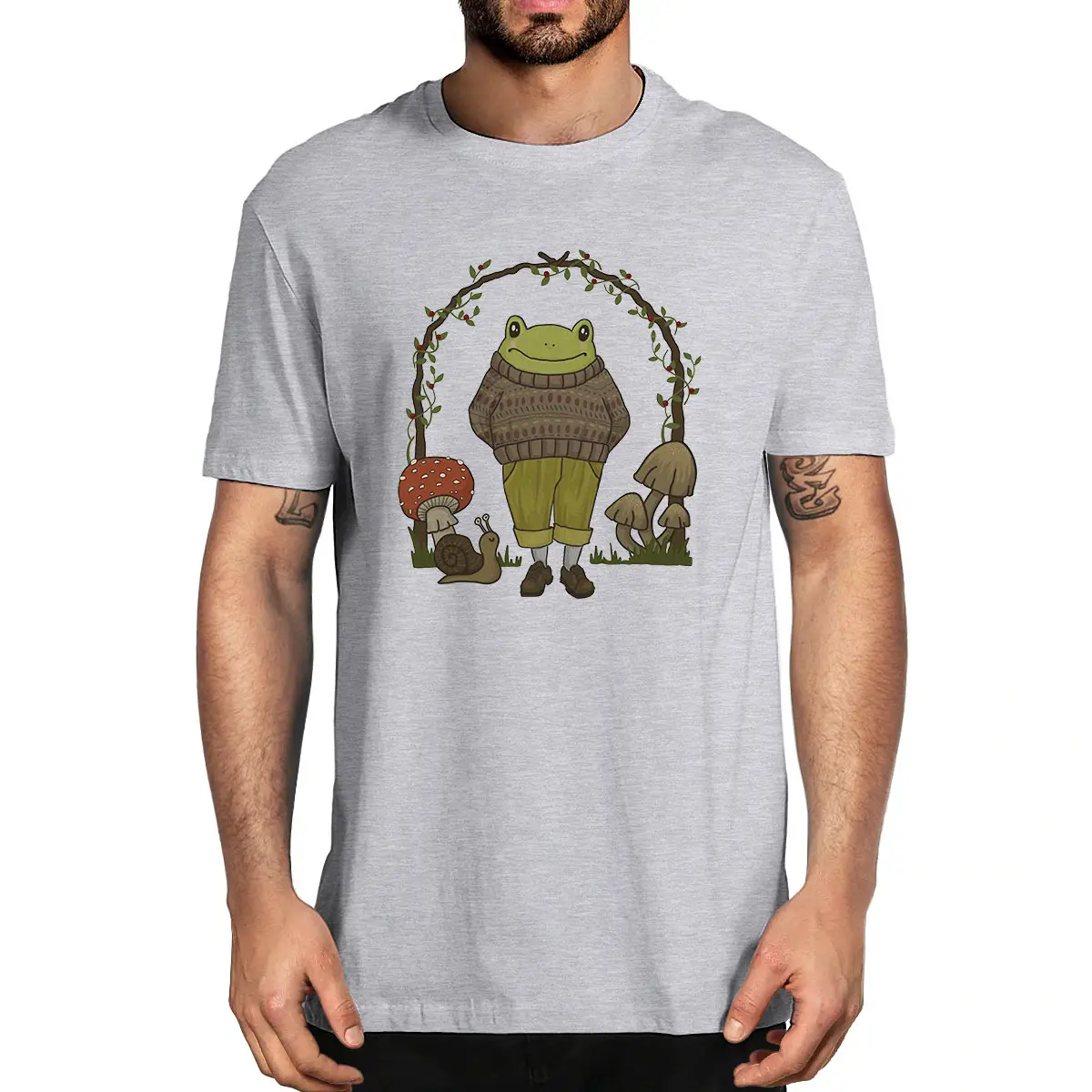 Goblincore Эстетическая лягушка гриб хлопковая темная Академия винтажная 100% хлопковая Летняя мужская новинка футболка оверсайз