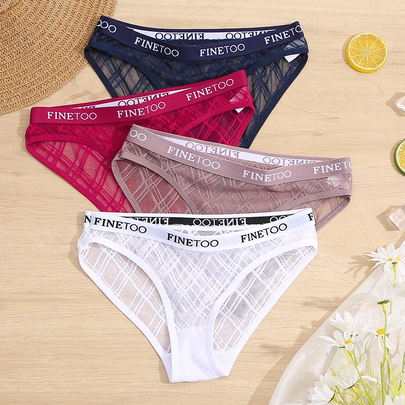 Женские сетчатые кружевные трусики, сексуальное нижнее белье FINETOO с низкой талией, женские ажурные трусы, женские трусы, геометрические трусики, женское нижнее белье