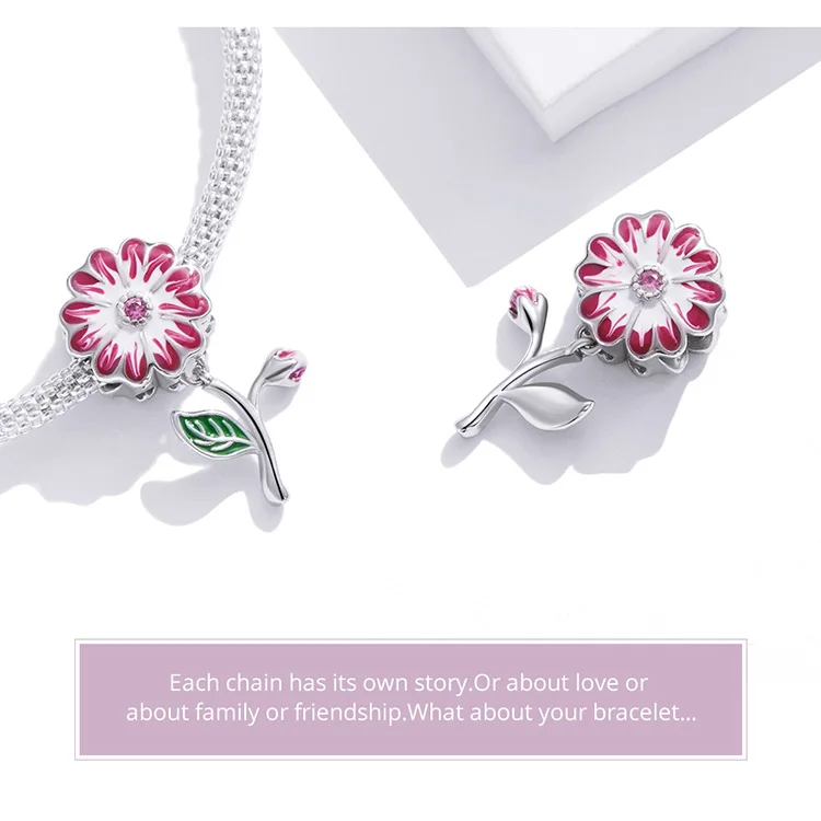 Bamoer, Новое поступление, подвеска из стерлингового серебра 925 пробы с розовым цветком, подходит для женщин, оригинальный браслет, сделай сам, ювелирное изделие, подарок