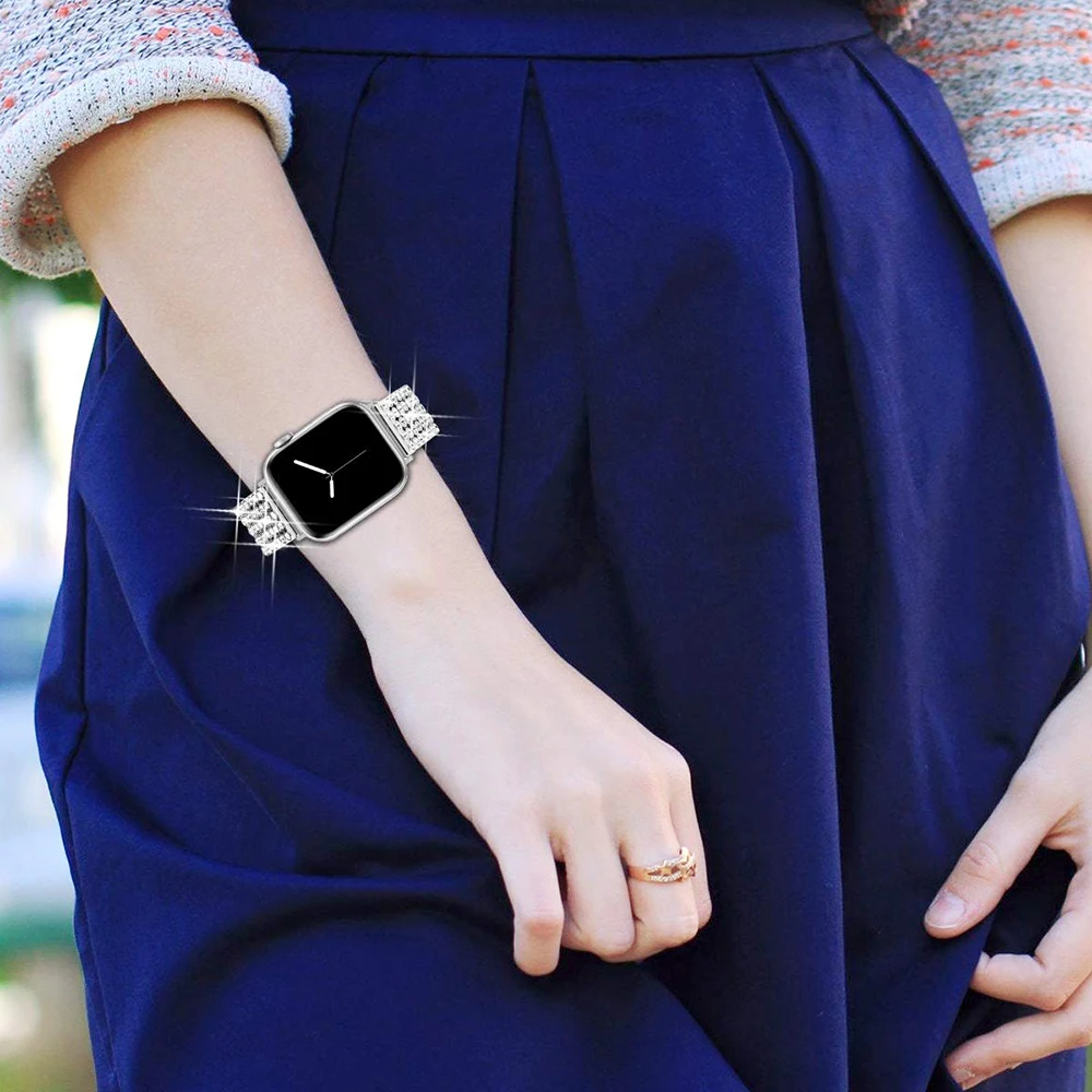 Металлический браслет для часов iwatch 4 5 6 SE 7 Band 44 мм 40 мм 41 мм 45 мм сменный Алмазный ремешок для Apple Watch Series 3 38 мм 42 мм