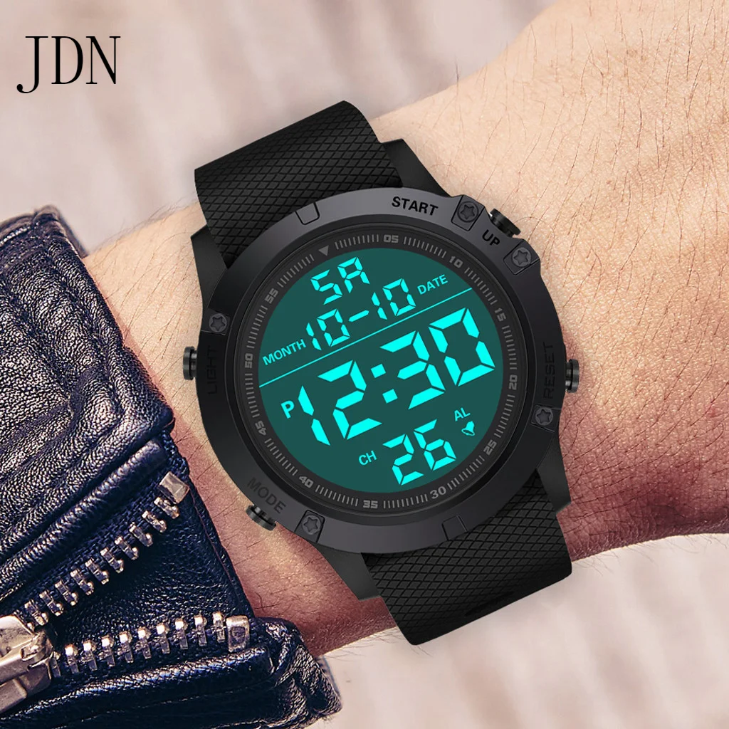 Наружные многофункциональные спортивные часы, мужские классические секундомер, электронный светодиодный наручные часы с подсветкой, 50 м водонепроницаемые цифровые часы Выбор материалов: высококачественный ремешок для часов из искусственной кожи, высококачественный чехол для часов из поликарбоната, прозрачная зеркальная поверхность из смолы, нижняя крышка из нержавеющей стали, Пряжка из нержавеющей стали Глубина водонепроницаемости 50 м: Не стесняйтесь носить часы, когда вы мочите под дождем, принимайте душ или Мойте руки. Но не нажимайте кнопки под водой. Также избегайте использования при экстремальной горячей или холодной температуре Многофункциональность: отображение времени, секундомер, задний светильник, отображение даты, отображение недели, будильник времени, 12/24 ежечасный, водонепроницаемый, ударопрочный, Модный стиль, многофункциональный дизайн, тонкое мастерство, не пропускать часы, стоит получить его и лучший выбор для подарков