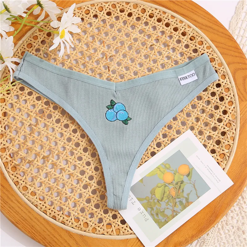 FINETOO, 3 шт. Компл., Хлопковые стринги, женские трусики-стринги с фруктовой вышивкой, M-XL, с низкой талией, с Т-образным вырезом, трусы, женское нижнее белье, трусики