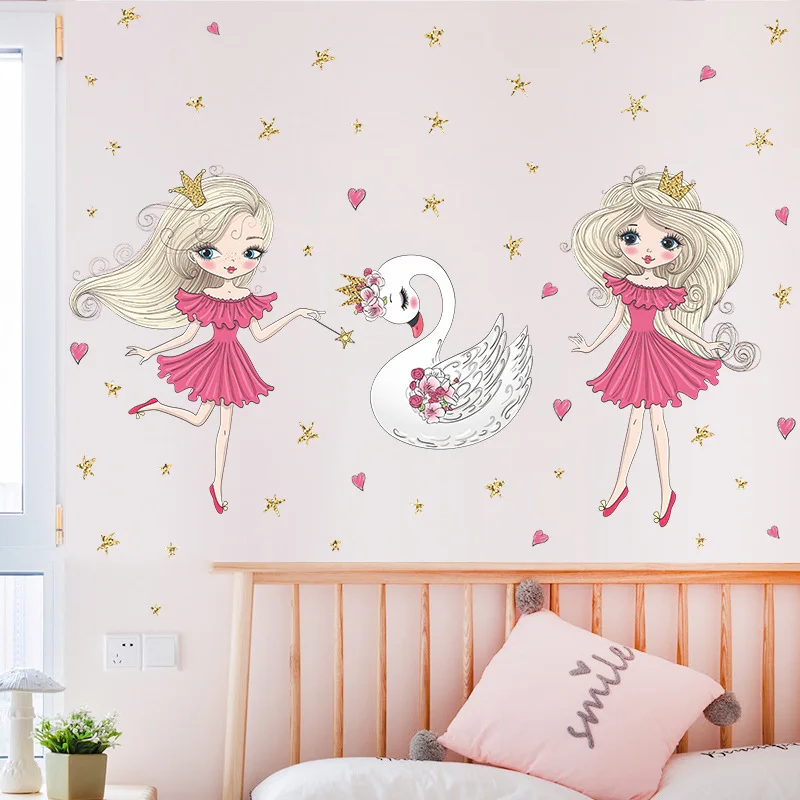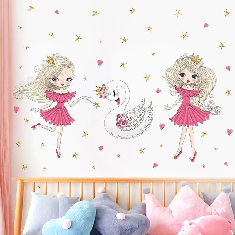 Красивые настенные наклейки в виде лебедя и принцессы, декоративные виниловые настенные наклейки розового цвета для девочек, декор для детской комнаты