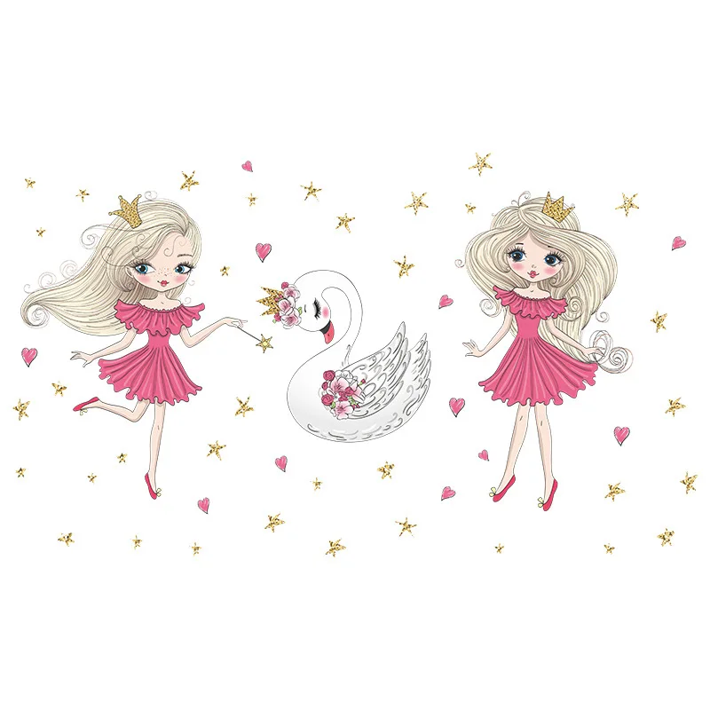 Красивые наклейки на стену с лебедем и принцессой, декоративные виниловые Розовые наклейки на стену для девочек, декор для детской комнаты