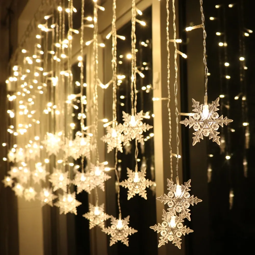 Рождественская декоративная гирлянсветильник-занавеска в виде снежи...