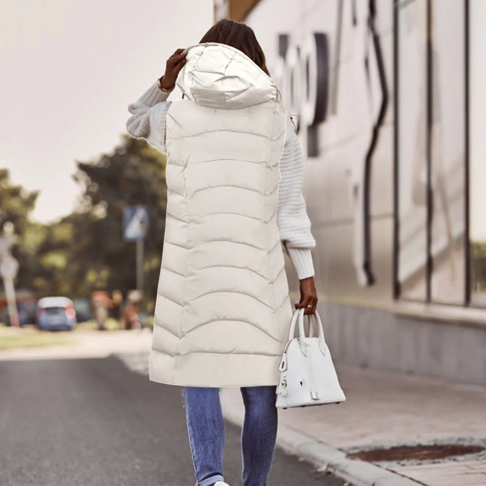 Зимние теплые женские длинные жилеты, повседневные пуховики с капюшоном, верхняя одежда без рукавов, жилет, однотонная Утепленная стеганая куртка с карманами d6