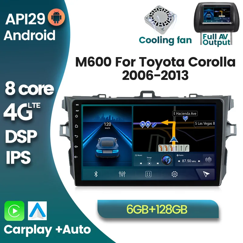 Автомагнитола для Toyota Corolla 2006-2013 1280*720 Android 10 GPS Navi IPS экран Автомобильный мультимедийный плеер Поддержка DVR охлаждающий вентилятор DSP