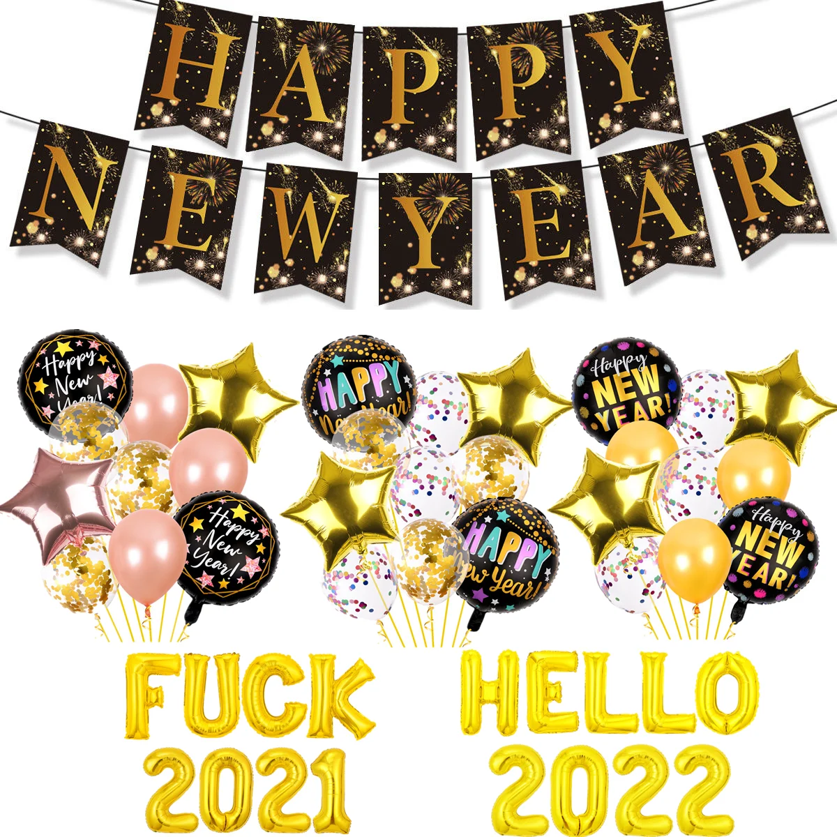 2022 С Новым годом воздушные шары, золото, серебро, номер, фольгированные шары, воздушные шары с буквами, украшения для новогодней вечеринки