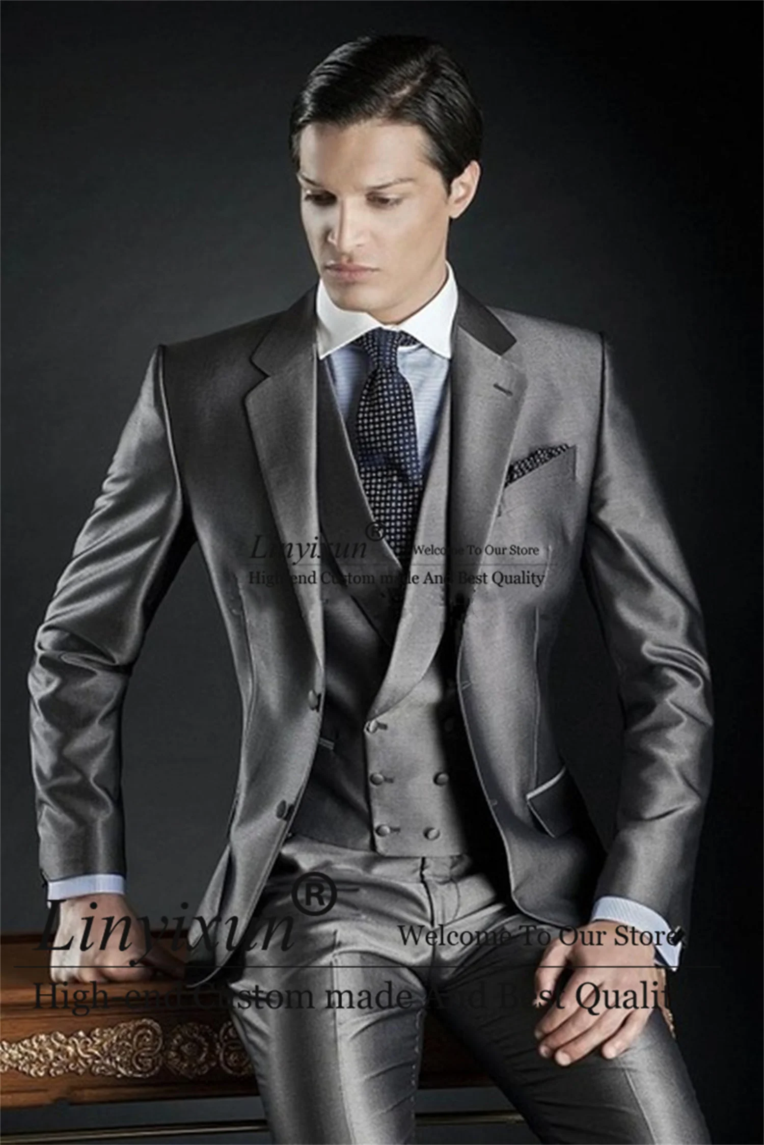 Классические Серые Мужские свадебные костюмы, комплект из 3 предметов для жениха в итальянском стиле, пиджак, жилет и брюки, мужской блейзер в деловом стиле