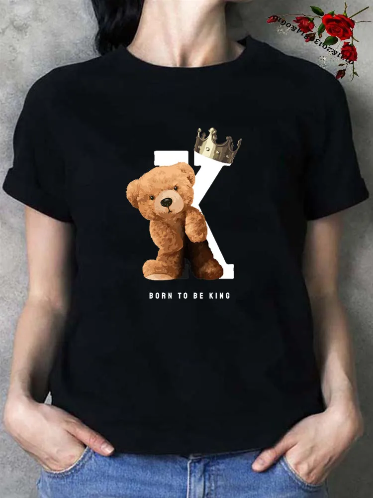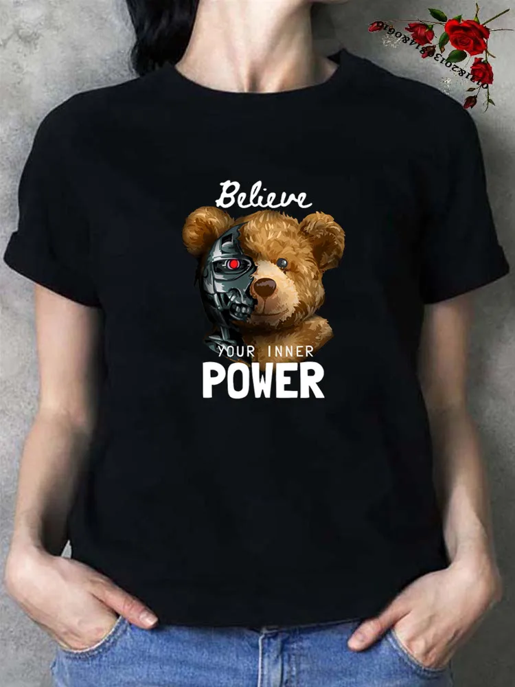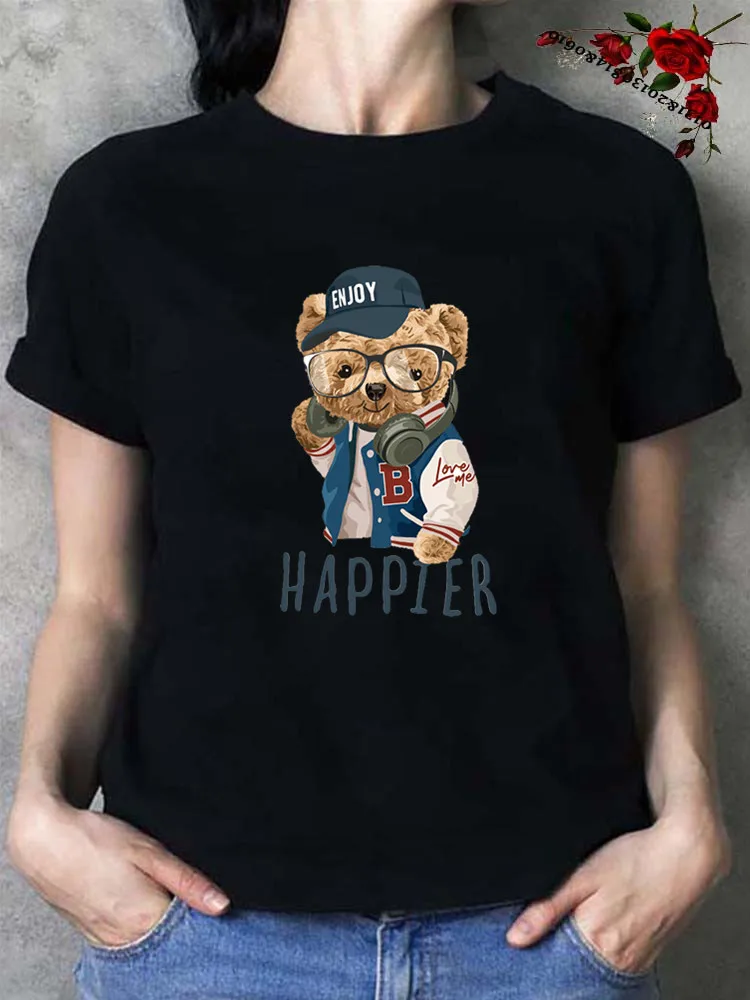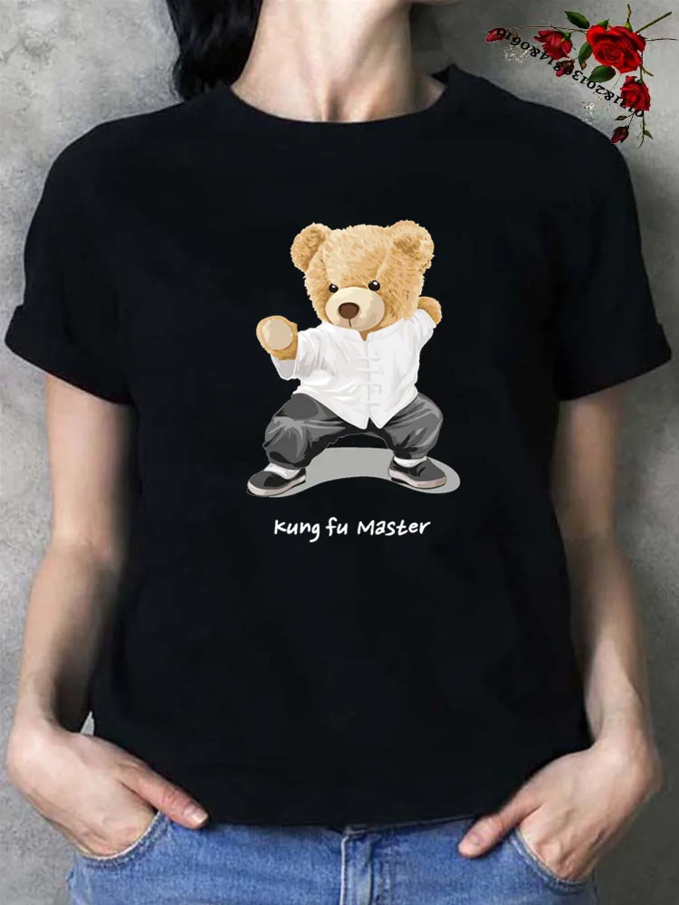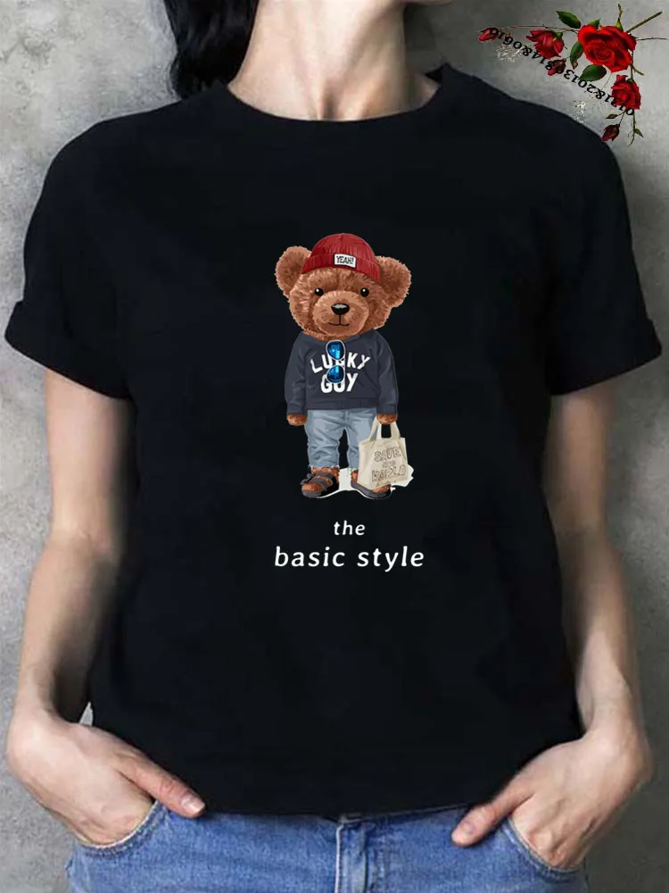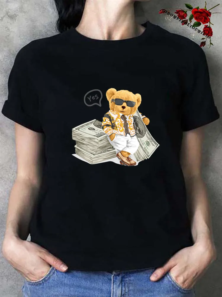 Женская футболка с коротким рукавом и принтом в виде медведя