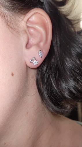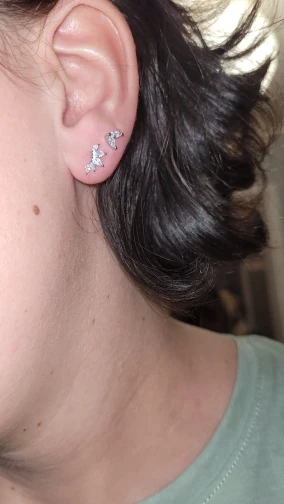 Это довольно мало, для пирсинга Конча это плотно, это больше для волдыря или для рта, потому что его стебель Довольно маленький. Кроме того, Модель Милая .. И он помещается на основание сзади