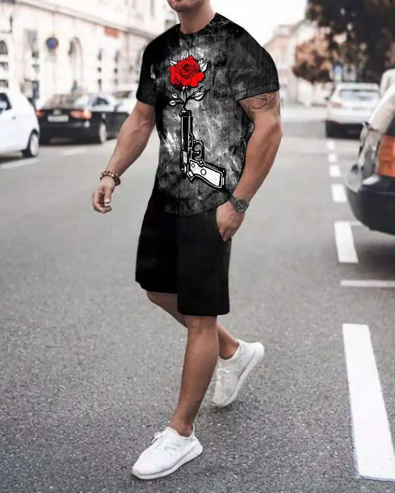 Футболка и шорты мужские большого размера, тренировочная одежда, комплект из 2 предметов с 3d-надписью, однотонная спортивная одежда с принтом и короткими рукавами