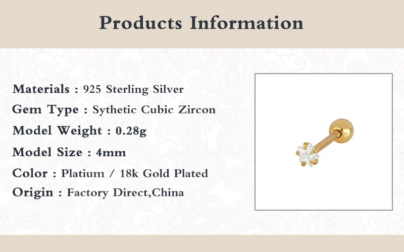 Женские серьги-гвоздики из серебра 925 пробы, 1 шт.