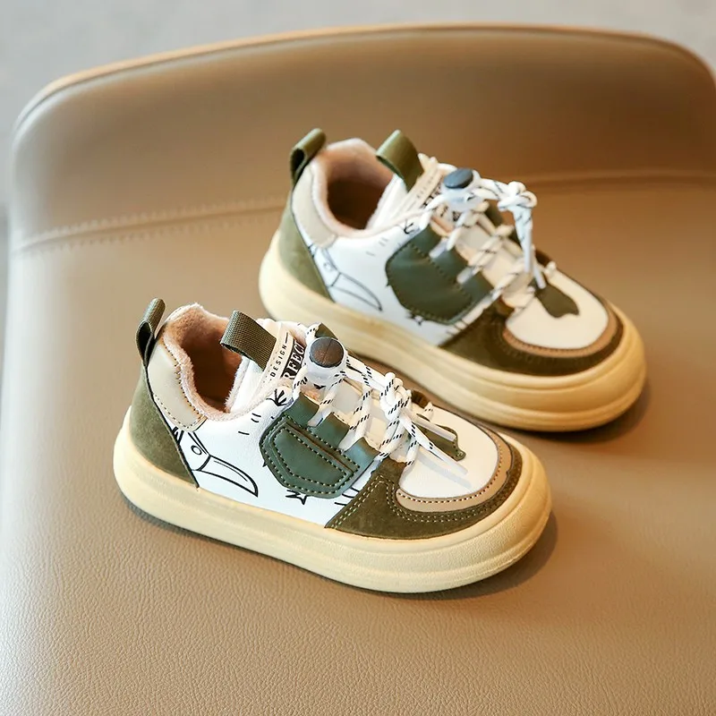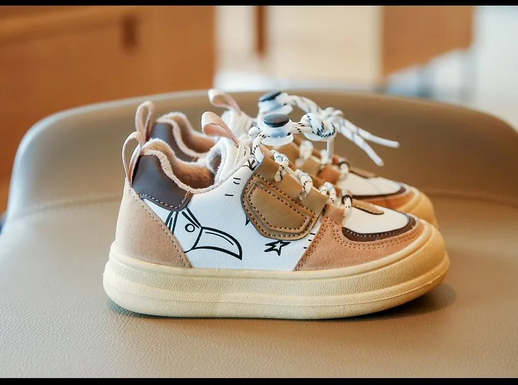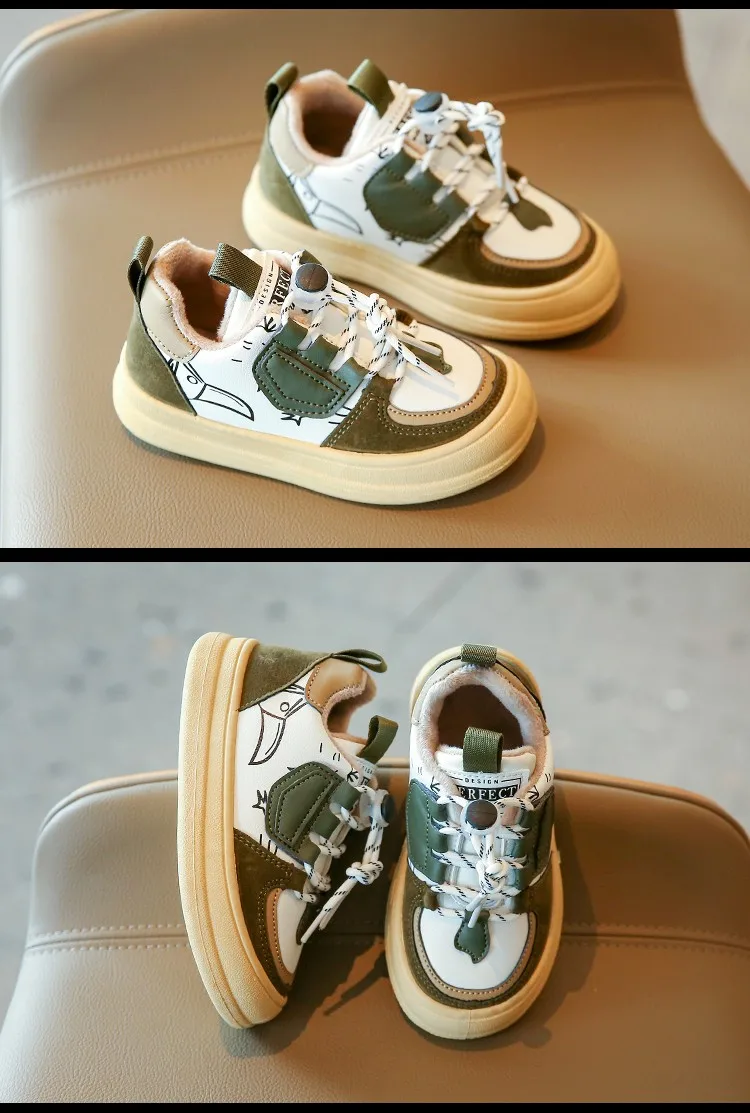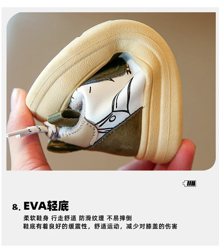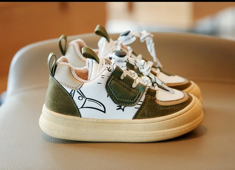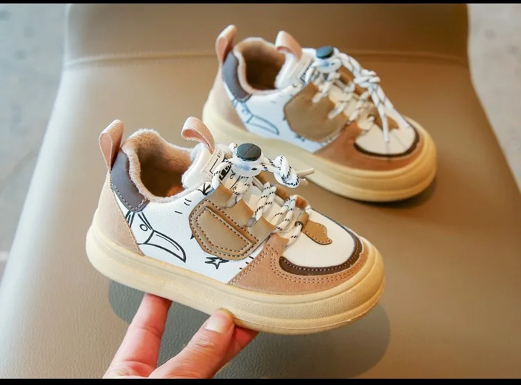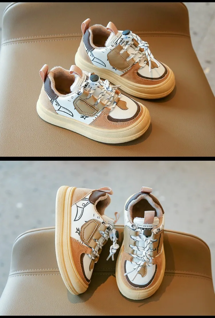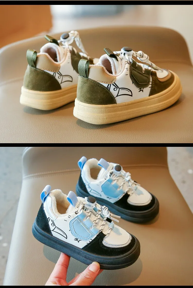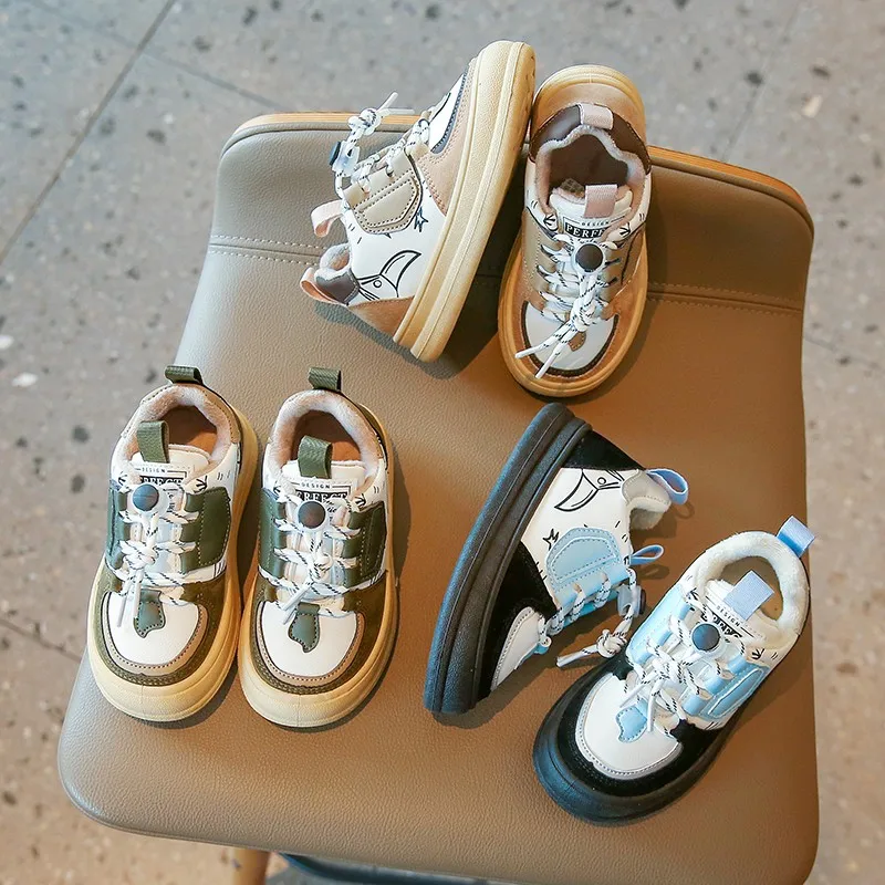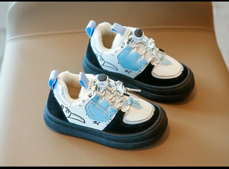 Кроссовки Детские Плюшевые Нескользящие, из ПУ кожи, на осеньзиму