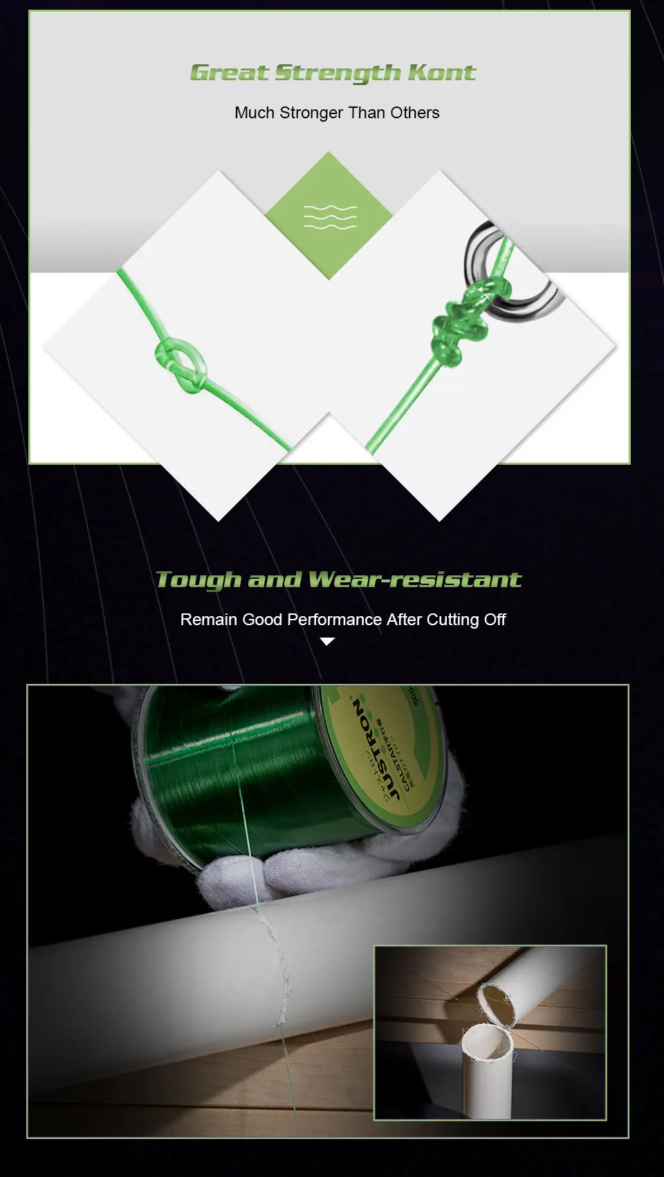 Нормальная леска, максимум 10.5 кг от пола оторвал и она порвалась 9 кг выдерживает нормально. Т.е заявленную прочность делим на 2. Не измерял, но кажется тоньше 0.5. Сплету новы подсак. :)