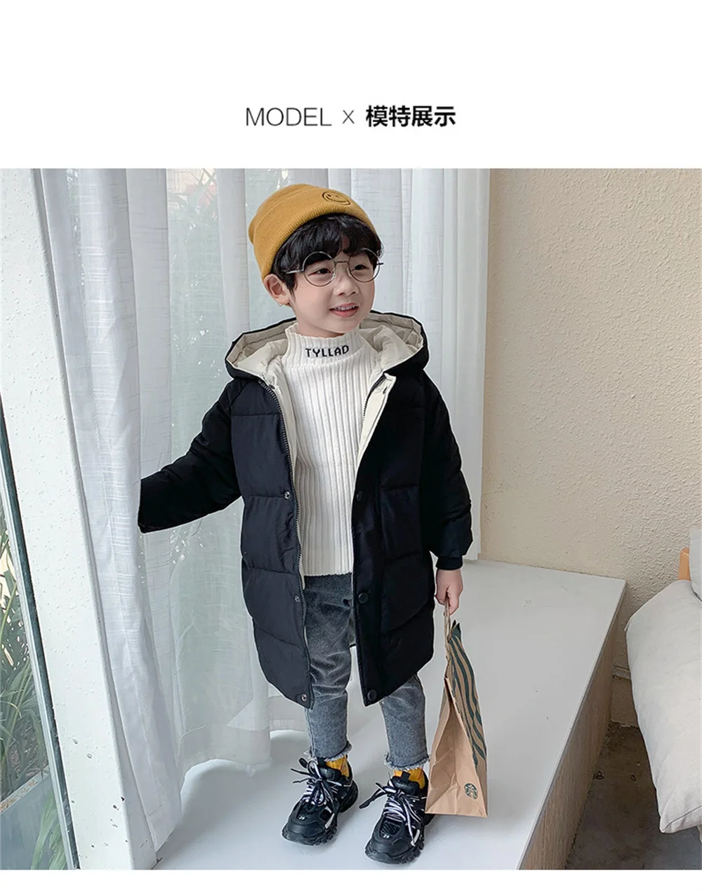 Детское зимнее теплое пуховое пальто, длинные утепленные куртки для подростков, Модная парка с хлопковой подкладкой для мальчиков и девочек, детская верхняя одежда, новое поступление