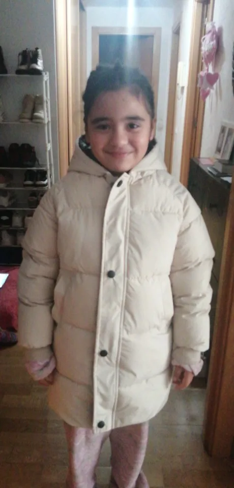 Пальто, как описано на картинке, оно супер красивое и теплое, я купил размер 150 для моей 9-летней дочери, и это было прекрасно, ей очень понравилось, все прибыло очень хорошо и быстро за 10 дней, как говорится... Спасибо, продавец.