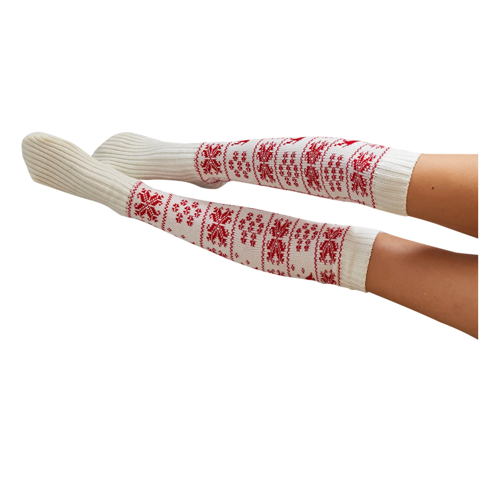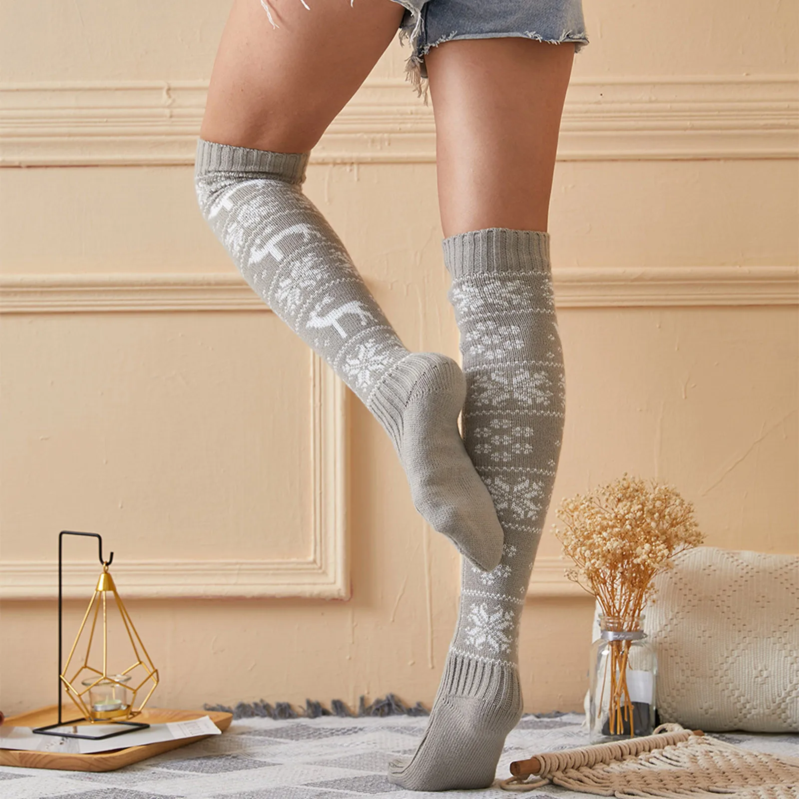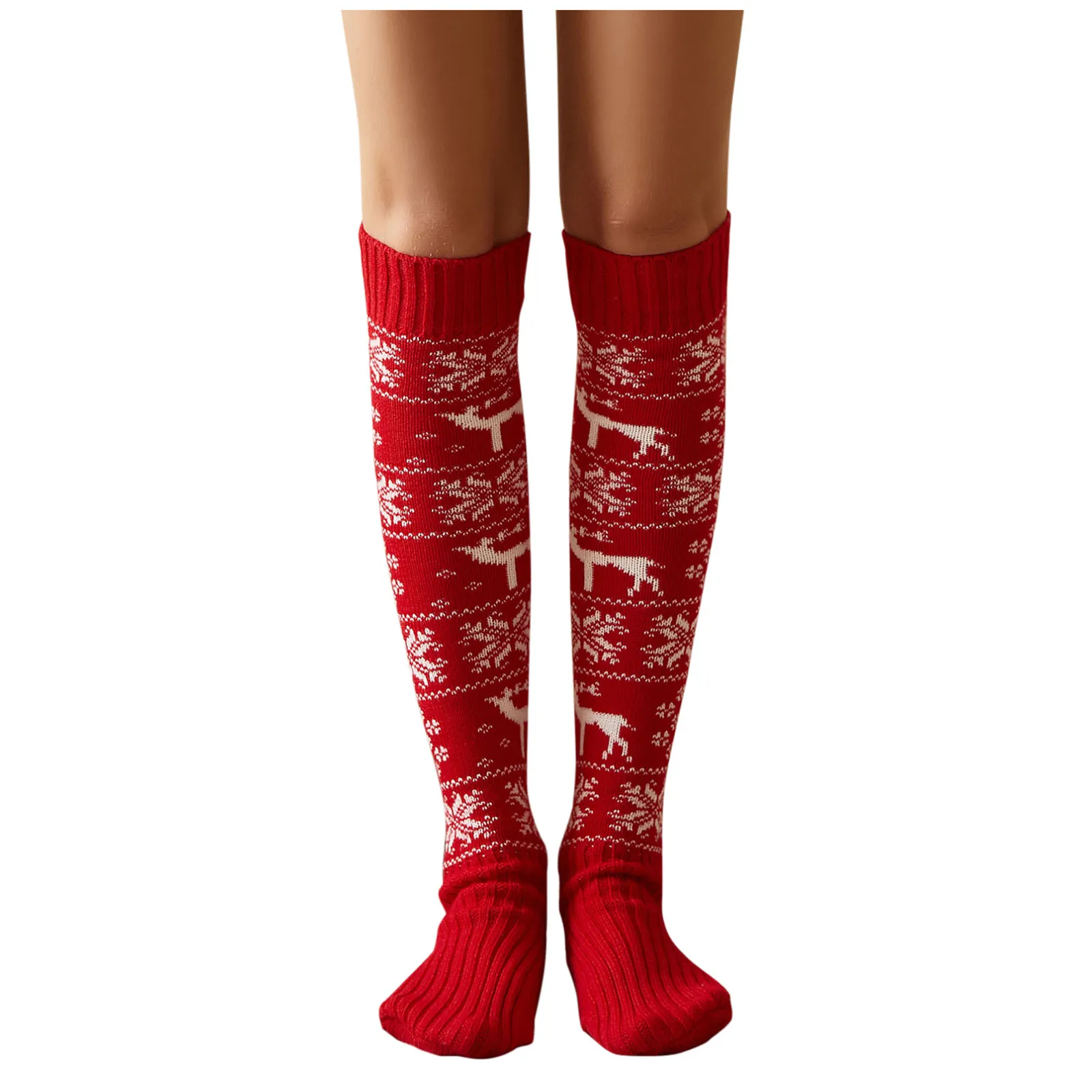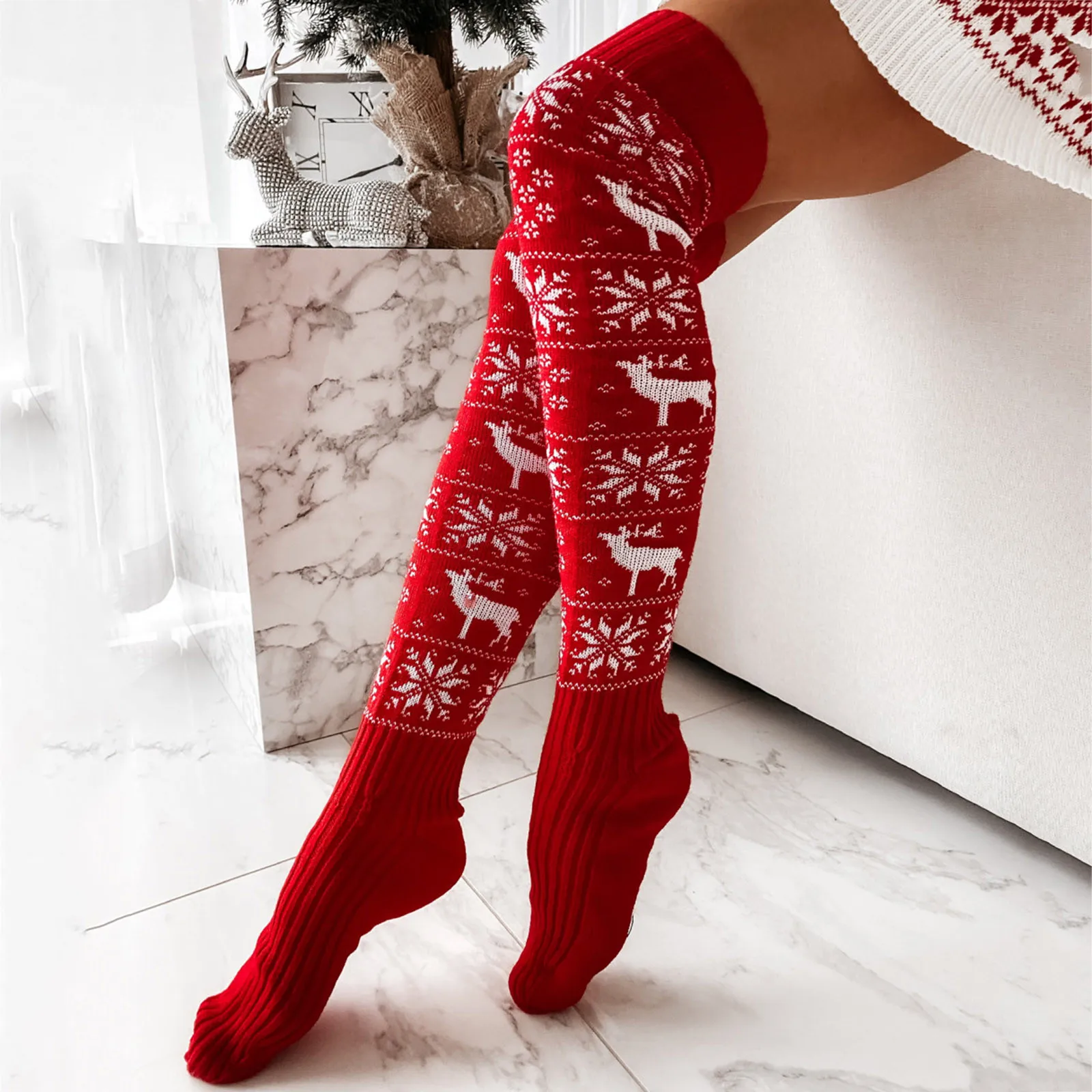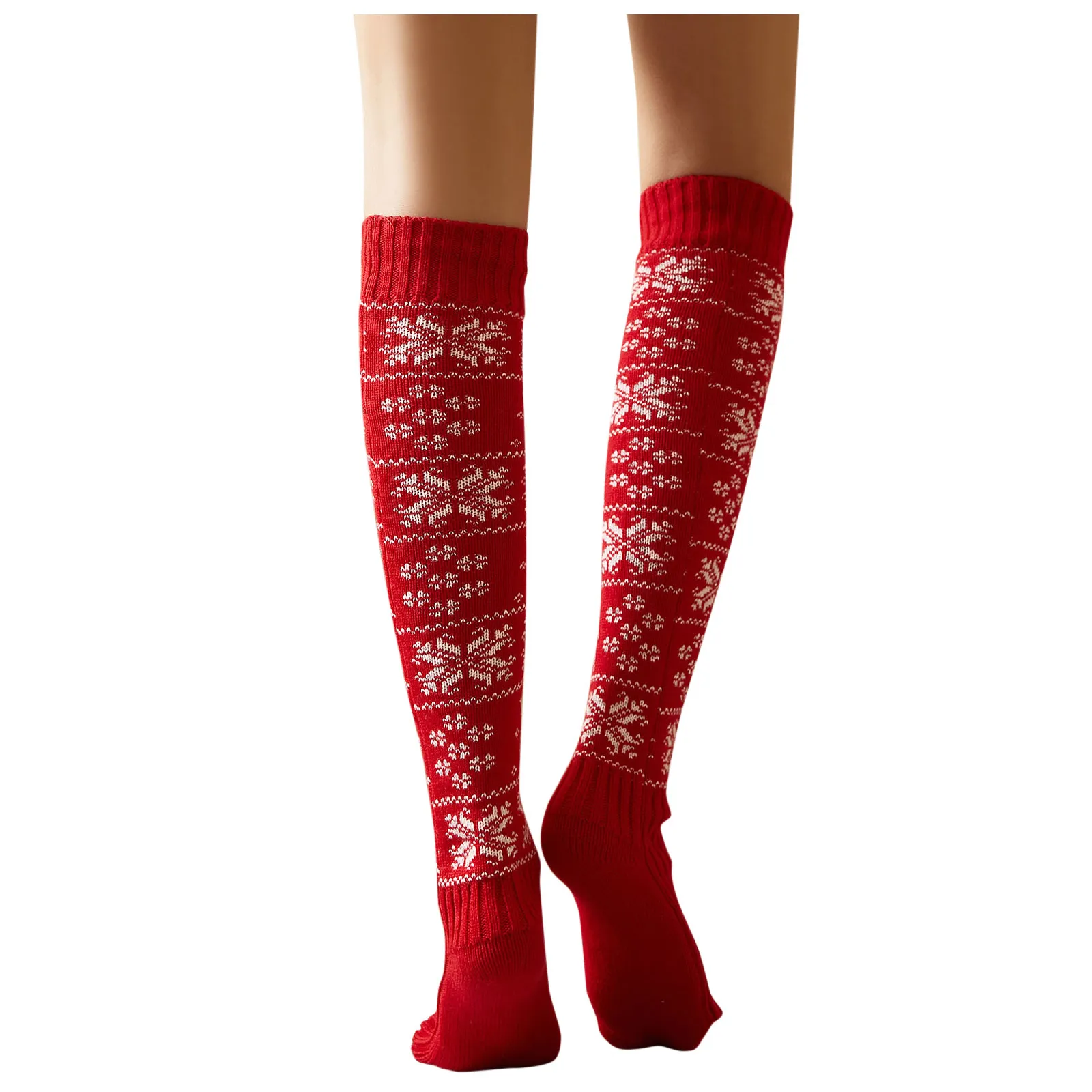 Женские Рождественские теплые Гольфы выше колена для девушек и женщин; Длинные хлопковые чулки; Вязаные теплые чулки