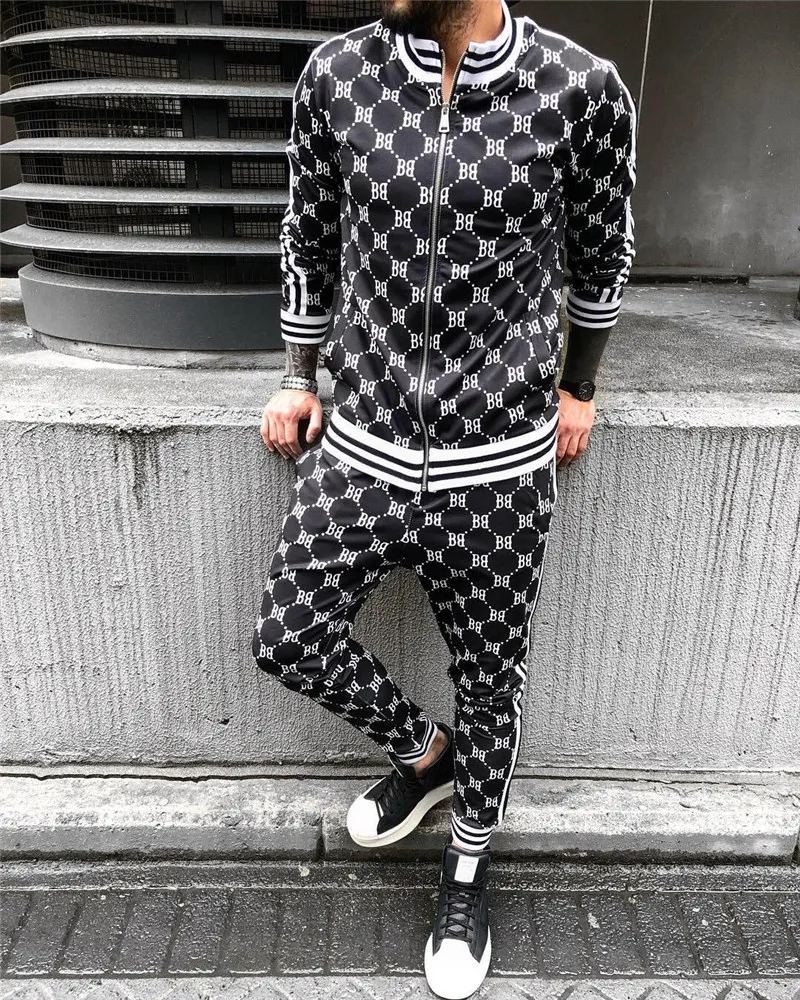 Мужской спортивный костюм весна-осень, модный клетчатый спортивный ...