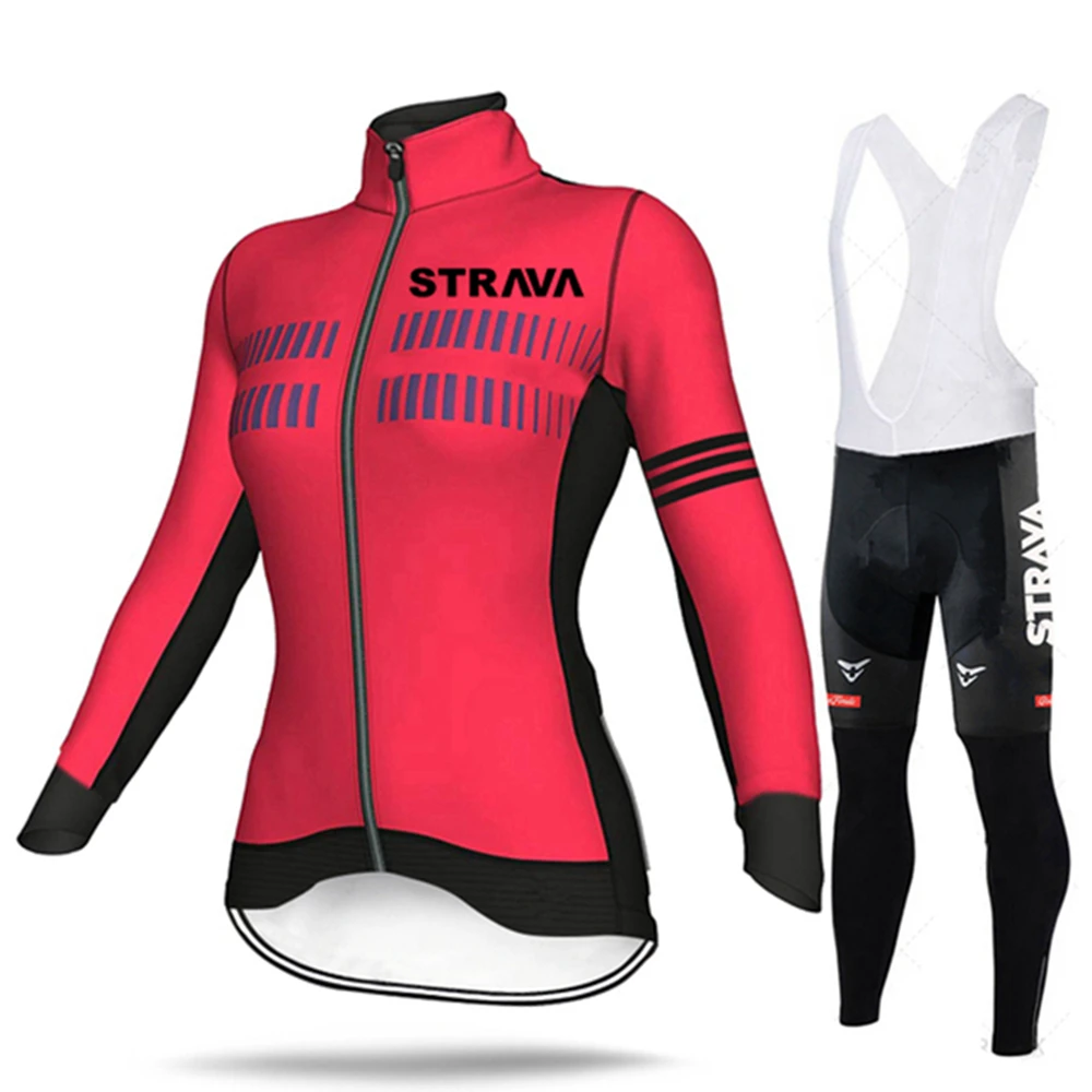 Strava весна-осень 2022, Женский комплект одежды для велоспорта с длинным рукавом и трикотажным нагрудником и брюками, профессиональный костюм для горных велосипедов, велосипедная одежда, рубашка