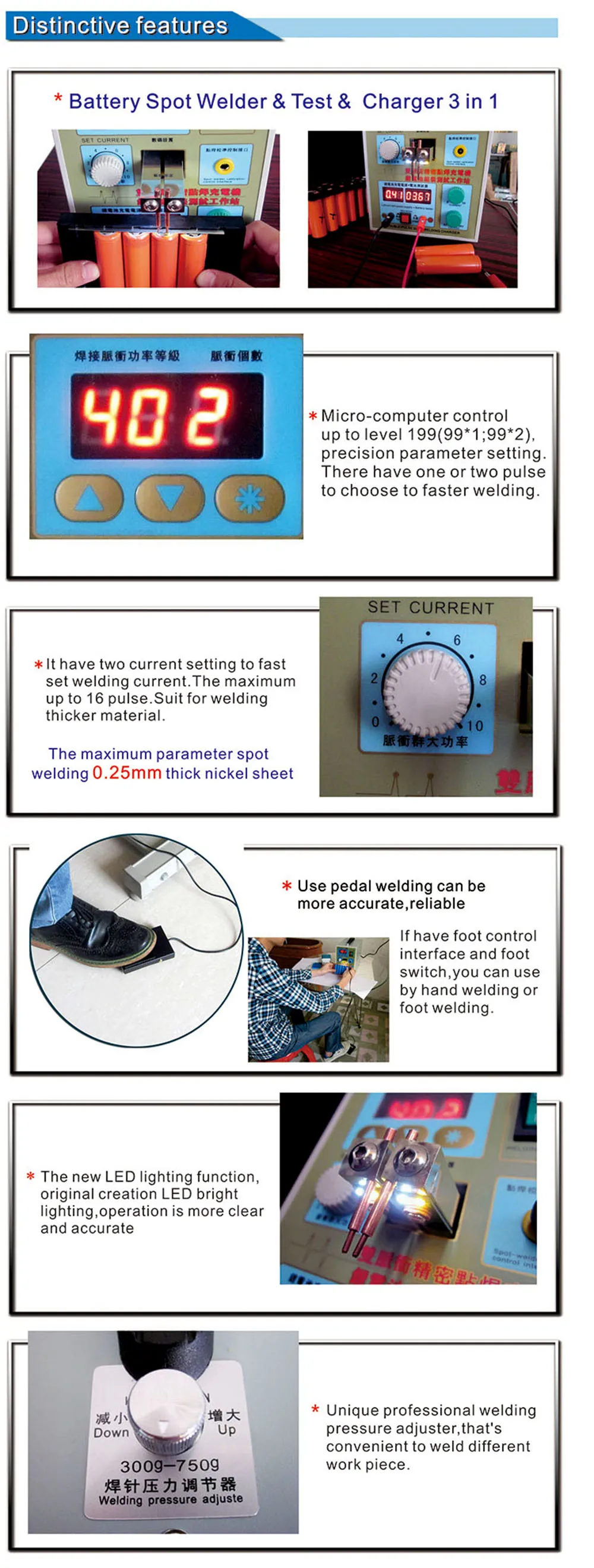 1. Точечная сварка, тестирование литиевой батареи, зарядка трех функций.
