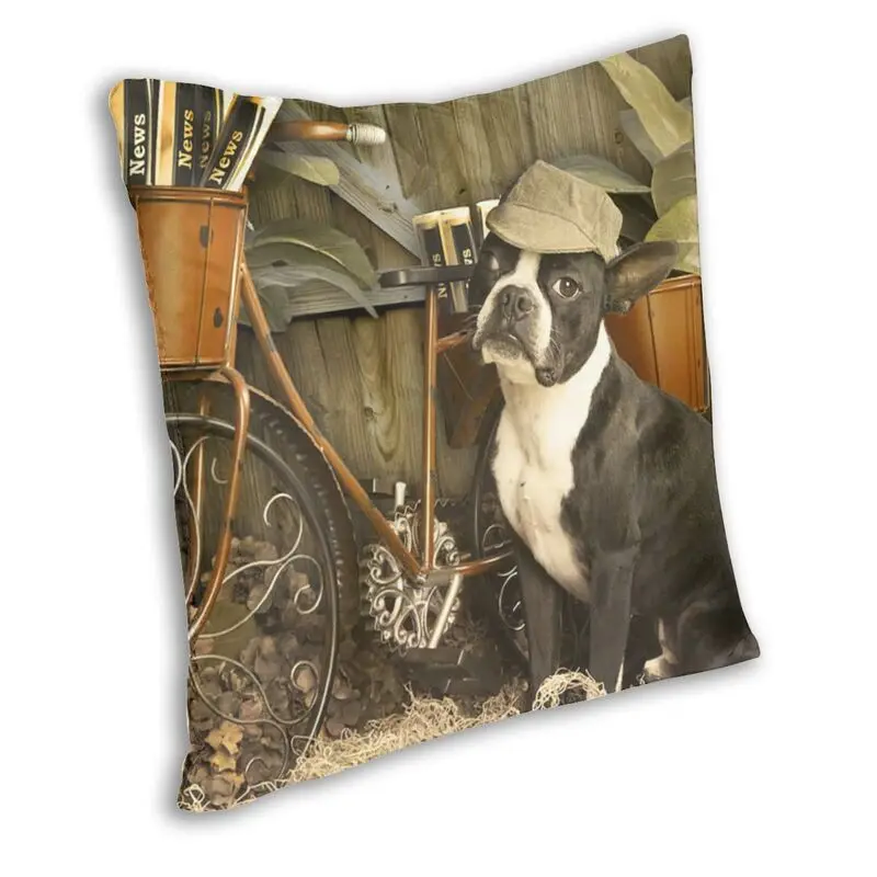 Ретро Чехол для подушки в скандинавском стиле с изображением Бостон-терьера из полиэстера для любителей мультфильмов собаки квадратная Подушка Чехол для домашнего декора