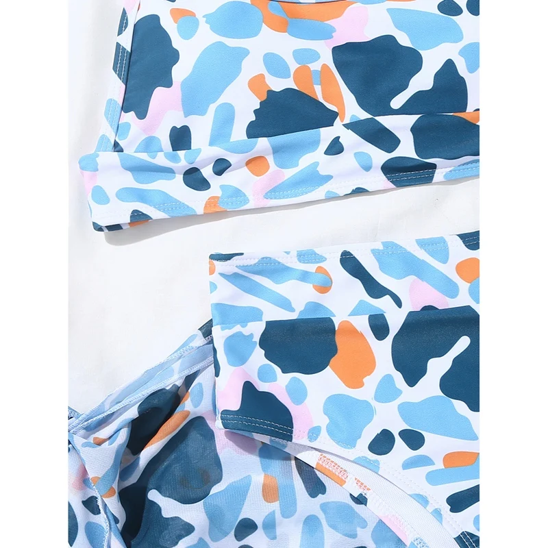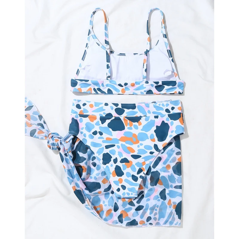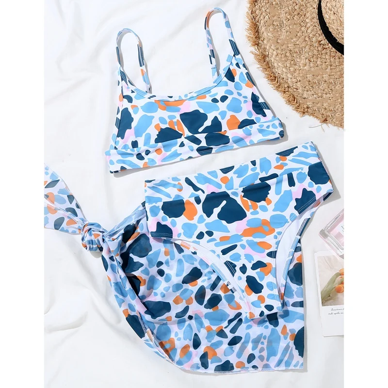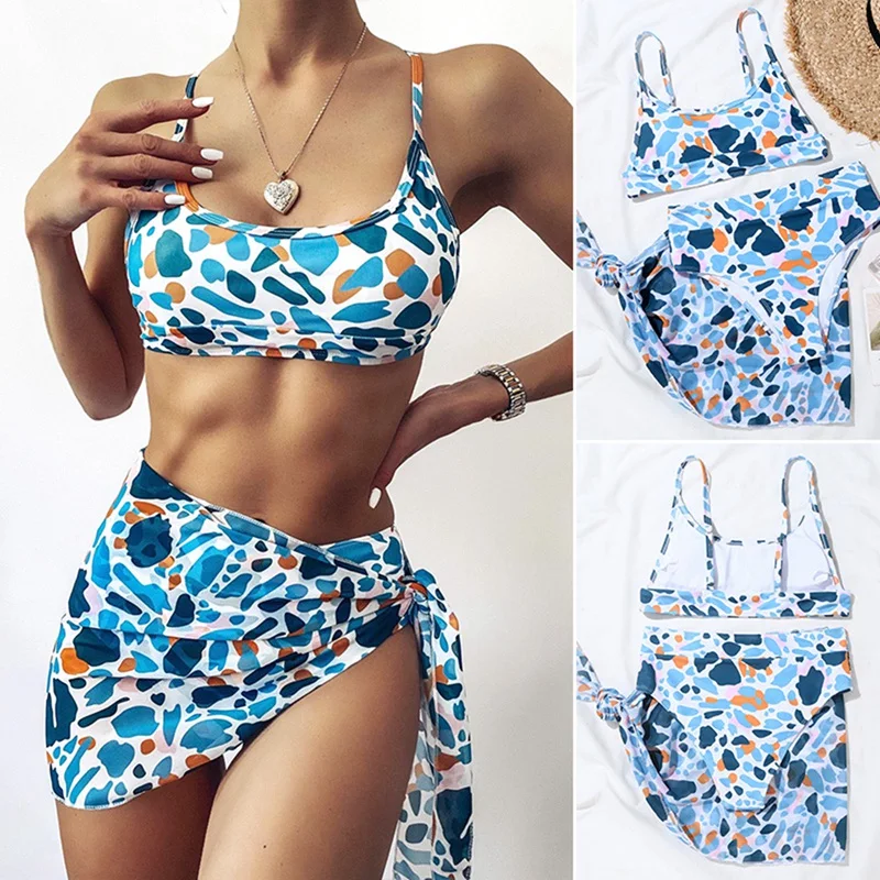 Женский купальный костюм с принтом, комплект из 3 предметов бикини, сексуальная одежда для плавания, летняя пляжная одежда, купальный костюм пуш-ап, пляжная одежда для плавания