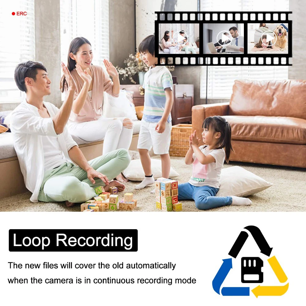 1. Запись в течение всего времени: когда вы вставляете карту micro-SD, камера автоматически включит режим записи 24 Петли, и запись будет сохранена на вашем файле micro-SD карты. (Sd-карта не входит в комплект)2. Режим записи обнаружения движения: когда камера обнаруживает движущиеся объекты, камера автоматически включит запись.