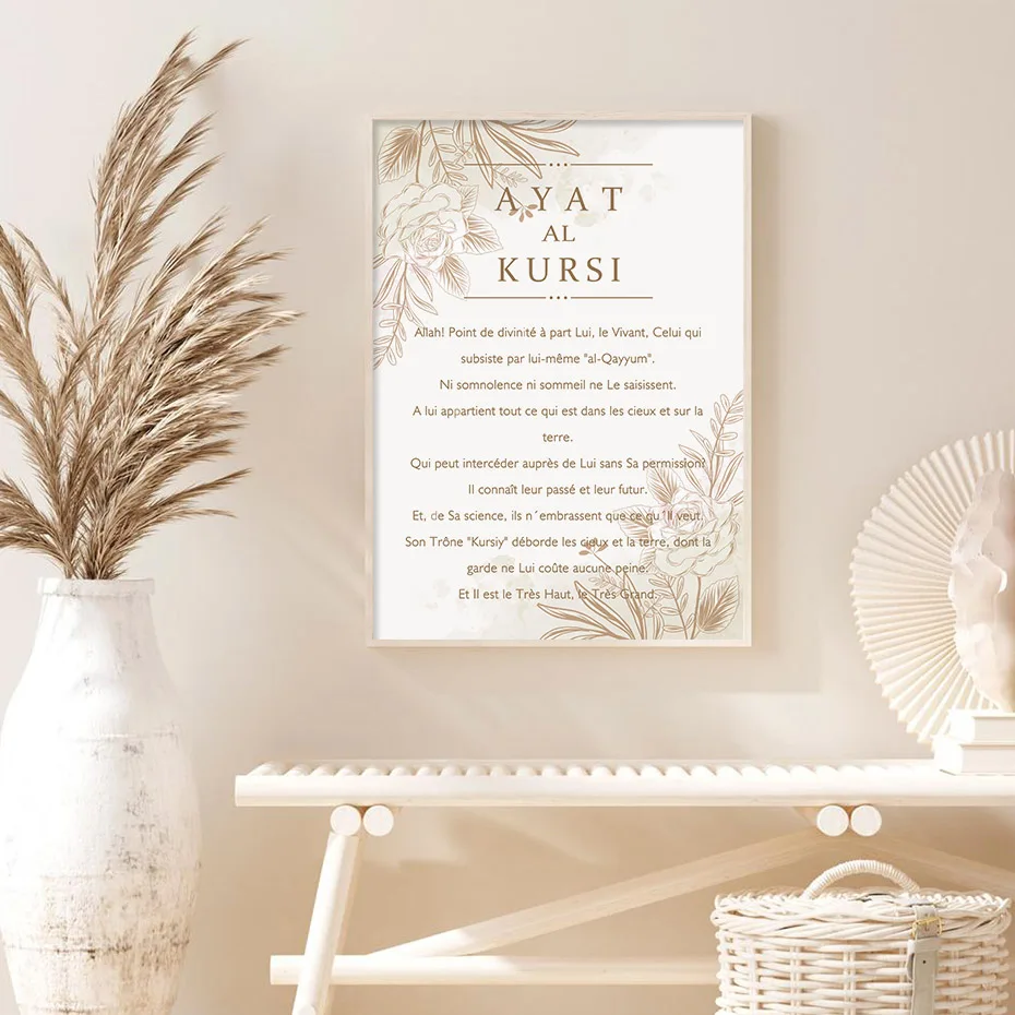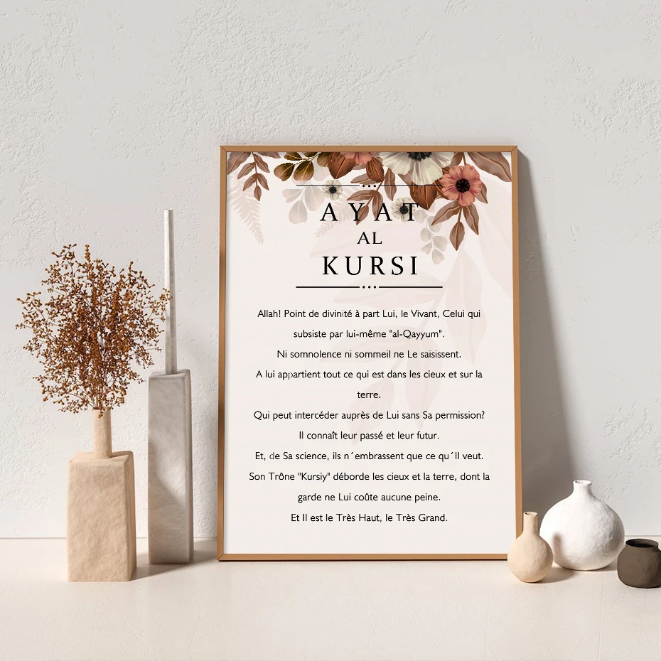 Мусульманская каллиграфия Ayat Al-Kursi Коран, французские Цветочные постеры, настенное искусство, фотообои для гостиной, домашний декор