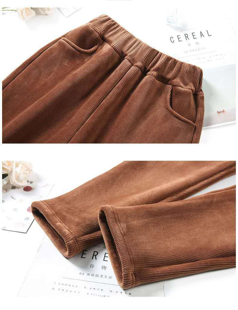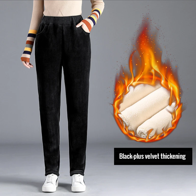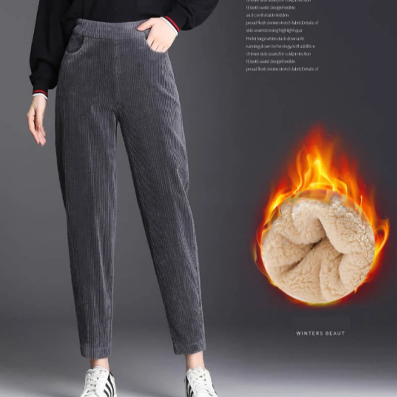 Женские плотные плюшевые вельветовые брюки 2021, Зимние Повседневные однотонные шаровары с высокой талией, женские теплые флисовые длинные брюки, брюки