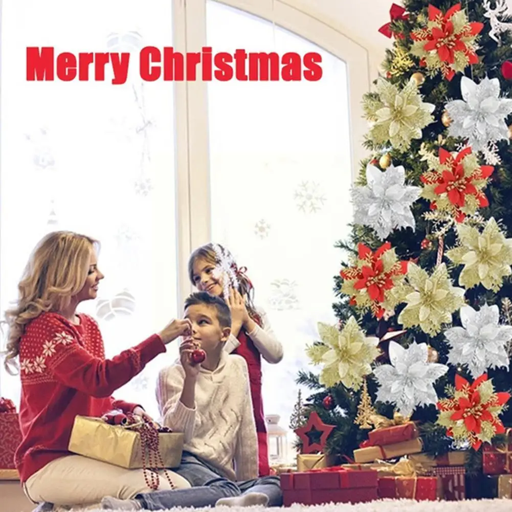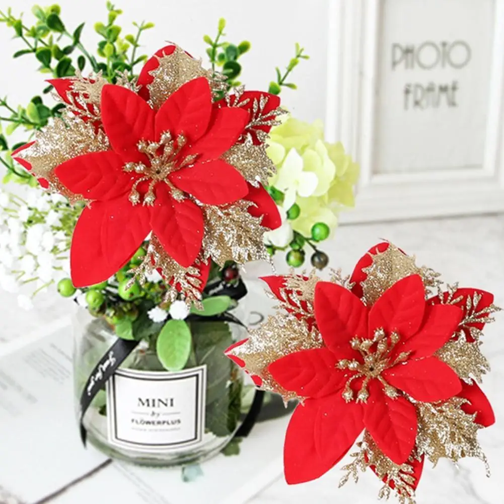 Рождественский день, Золотая пудра, Рождественский цветок, имитация дерева, украшение, цветочные аксессуары, Рождественский венок