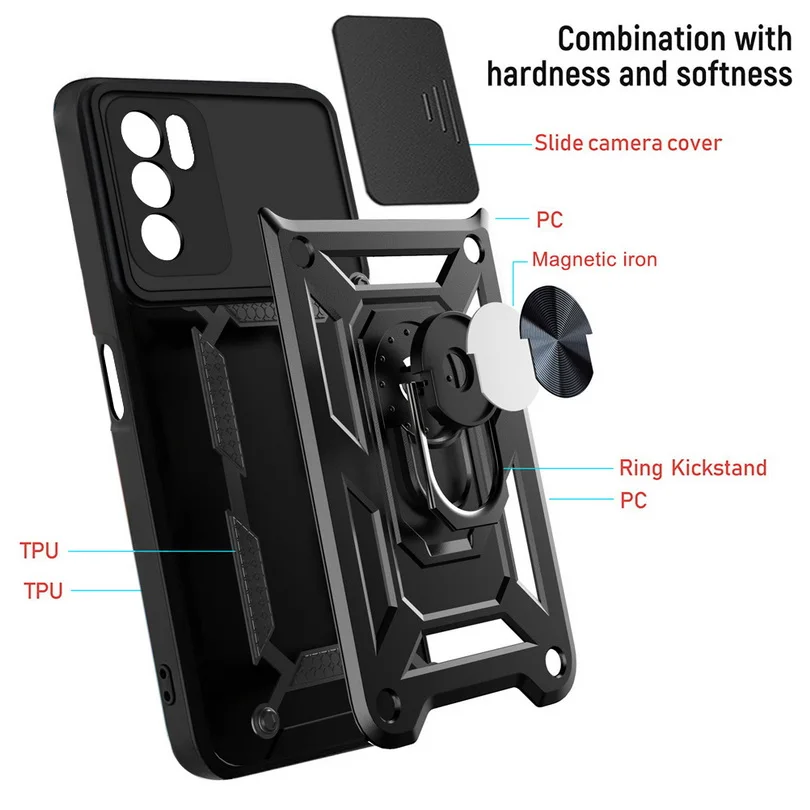 Защитный чехол для камеры OPPO A16 A54 A74 A15 A15S A94 4G A53 A32 A33 A72 A73 A52 A93 A9 2020 A5, армированный Гибридный чехол-накладка с кольцом