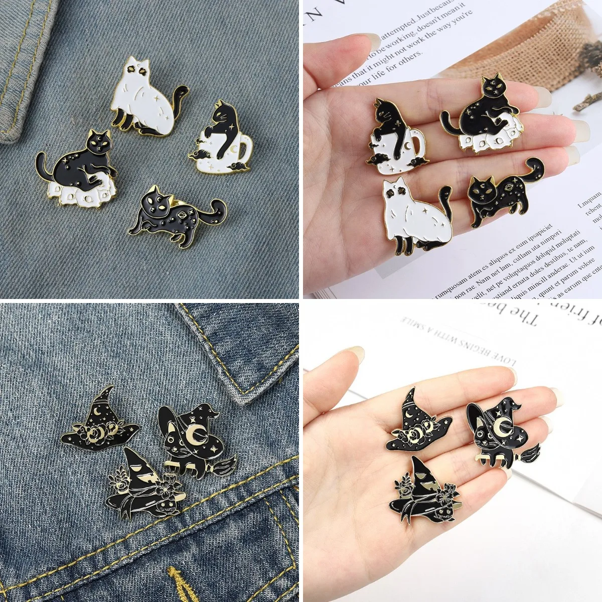 Черные Волшебные коты волшебник шляпа Броши эмалевые заколки на зак...