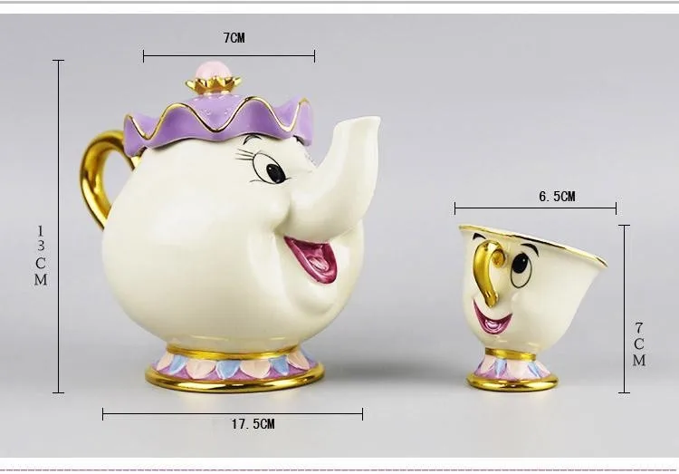 2022 мультяшная Красавица и чудовище, чайный горшок, кружка, Mrs Potts, стеклянный горшок, чашка, один набор, милый Рождественский подарок
