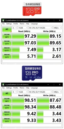Это первый раз, когда Samsung sd-карта сдала меня! У меня уже есть Evo Plus 128 Gb SD, который стоит 15 $ и я использую его еще один год, и я был очень удивлен, увидев, что он имеет ту же скорость чтения и записи Pro one что стоит 22 $, то есть, я на самом деле заплатил больше 7 $ ни за что! Как вы видите в тестовом тесте, он даже не может достичь 100 МБ/с./с чтения или записи! Я ожидал, что он достигнет минимального значения для чтения 120 Мб/с и записи 100 МБ/с./с, но он даже не близок к этому! И чтобы быть чистым, Я запускаю тест в течение 5 раз, используя флеш-ридер Ugreen USB3 с помощью USB C и USB 3 порта с одинаковыми результатами :( не покупайте это и экономьте 7 $ и просто купите обычный Evo plus, это та же sd-карта, но с разным цветом! Стыд на вас Samsung .. Стыд на вас: (