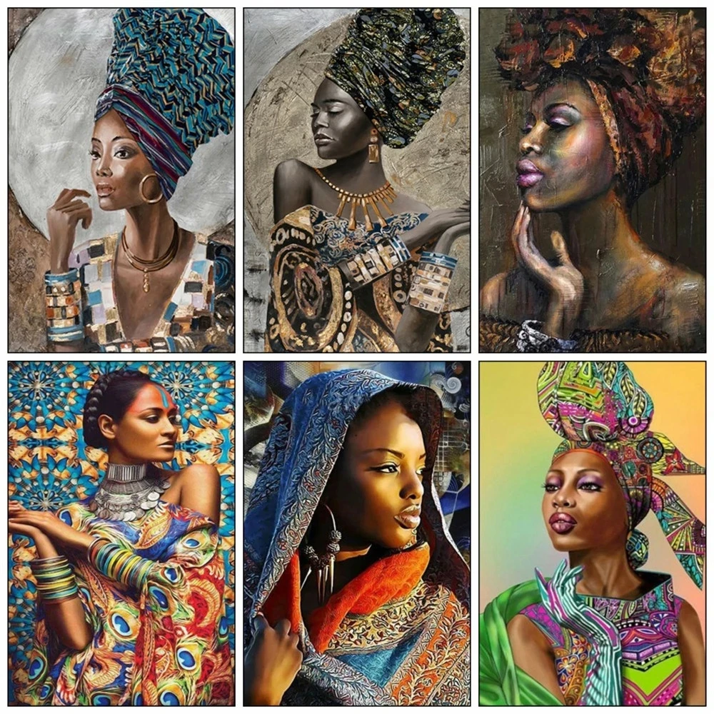 5D алмазная живопись сделай сам, квадратная Круглая Мозаика стразы, картина для африканской женщины, алмазная Вышивка крестиком, украшение для дома